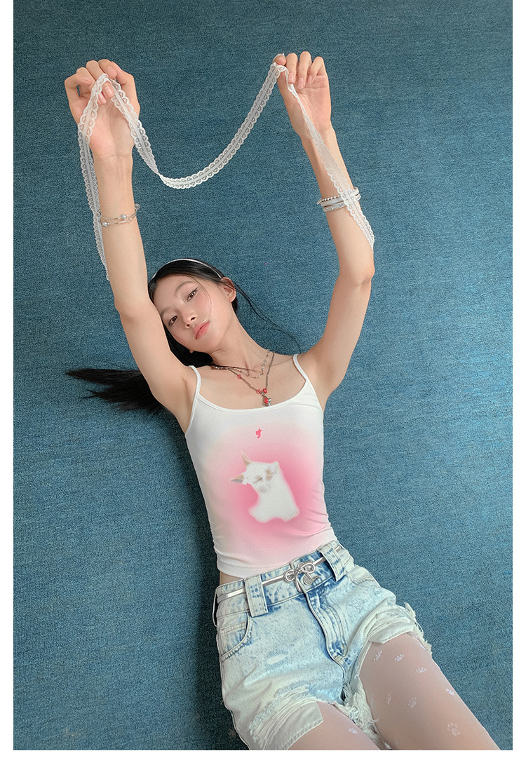 FTT FlyTheTruth『温柔暴击』 甜美可爱兔子印花吊带背心女夏百搭