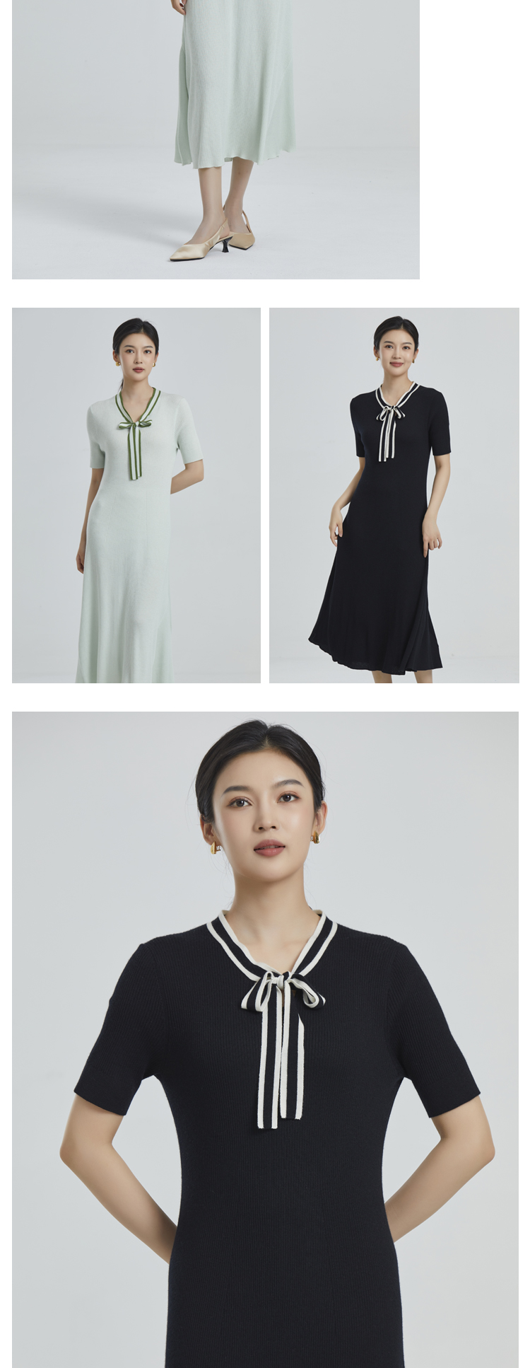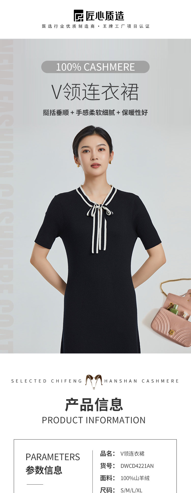 东黎 • 山羊绒女士春夏精纺百搭中长款连衣裙 4221