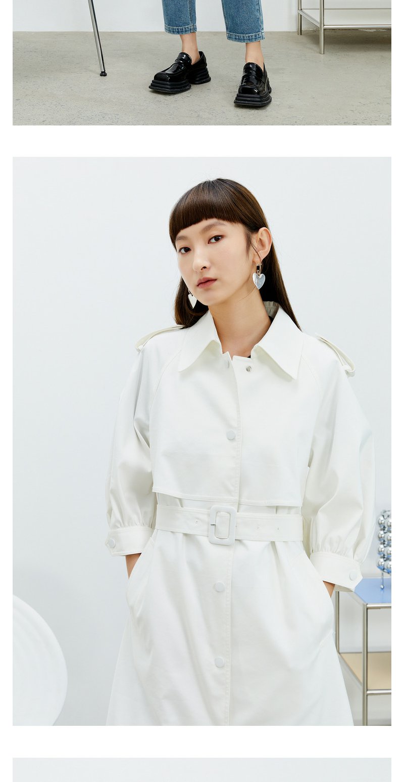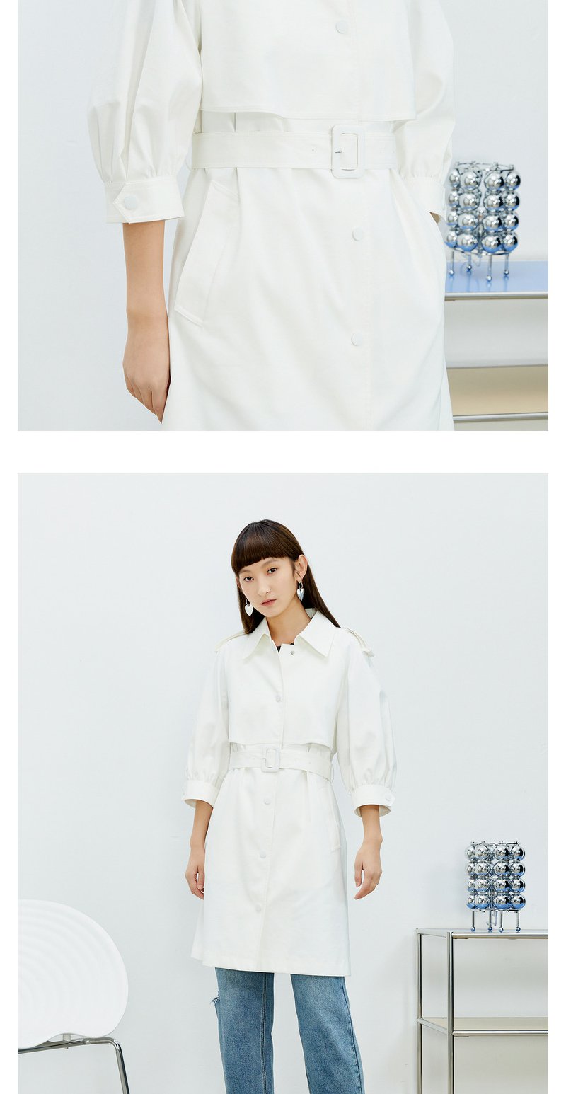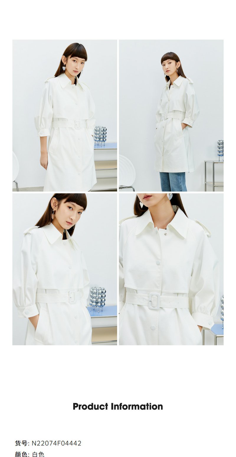 NEELLY纳俪风衣女2022年新款单排扣收腰系带中长款外套气质泡泡袖N22074F04442
