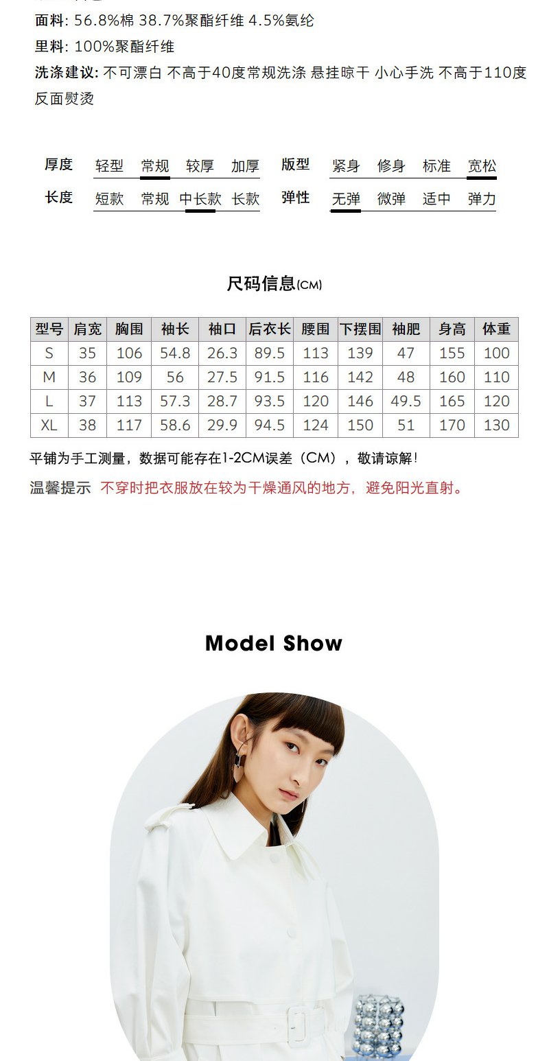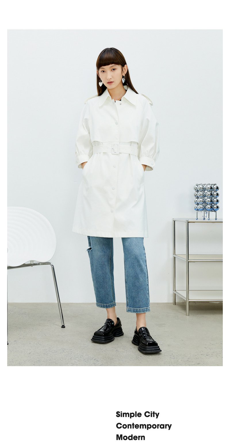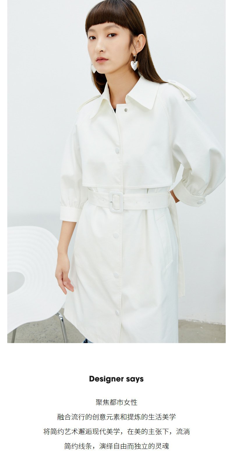 NEELLY纳俪风衣女2022年新款单排扣收腰系带中长款外套气质泡泡袖N22074F04442