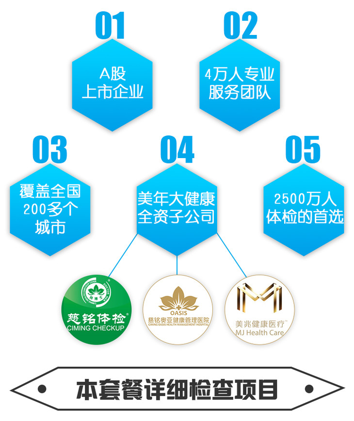 - 中国体检行业上市企业。集健康体检、健康管理、健康咨询于一体的经营连锁机构,致力于企业、个人的健康管理服务。