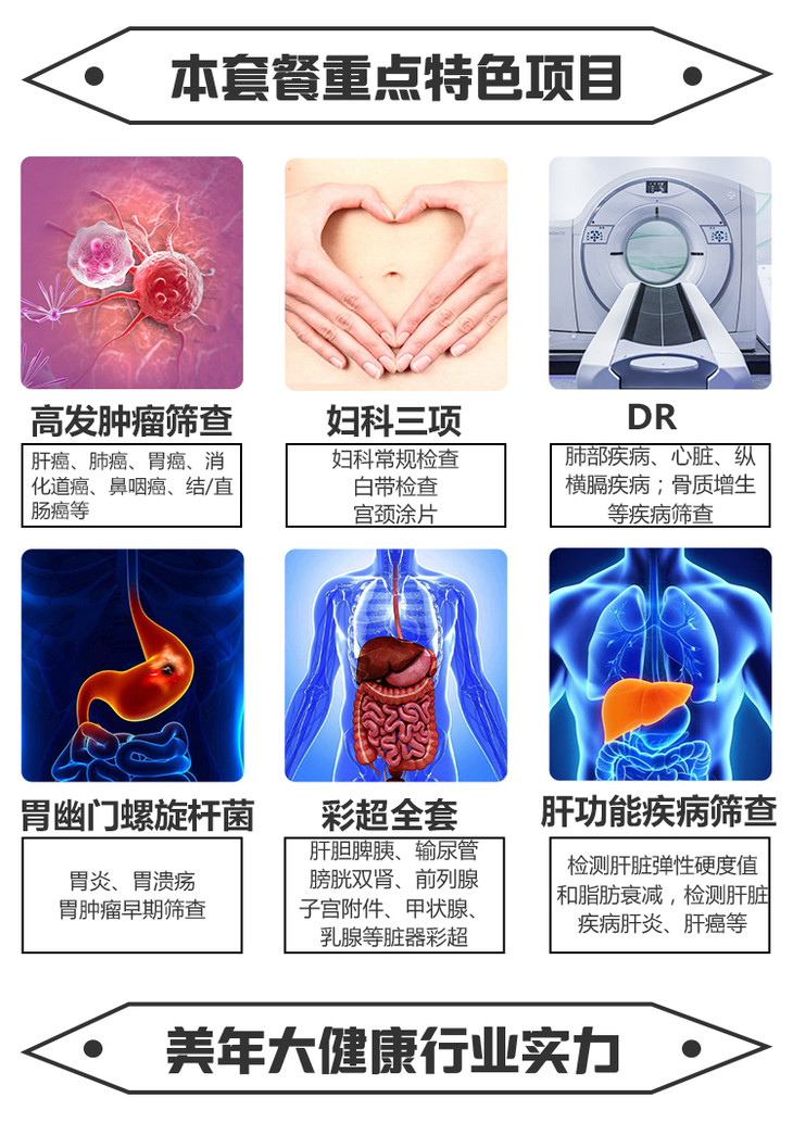 美年大健康精选单人套餐,高发肿瘤检测、全身11部位彩超、血脂血糖肝肾功能检测