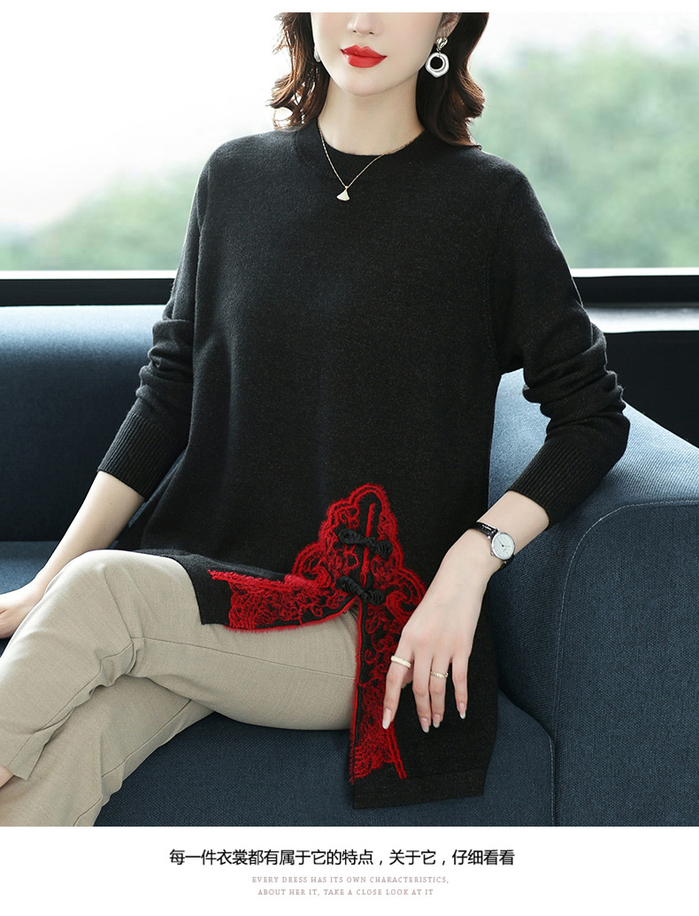 中长款开叉毛衣,新款秋冬装宽松内搭上衣针织打底衫CC-56-2273