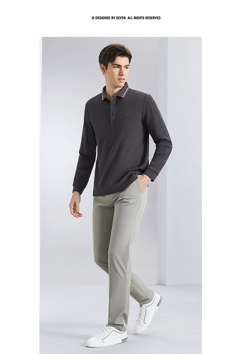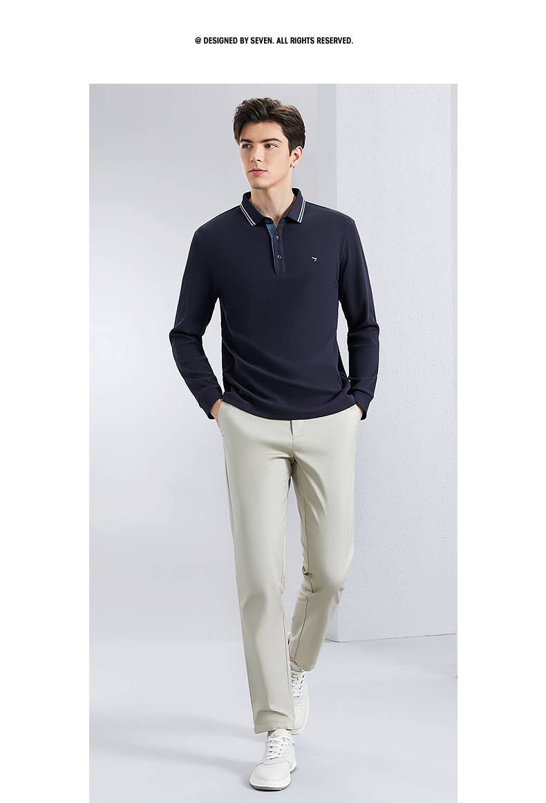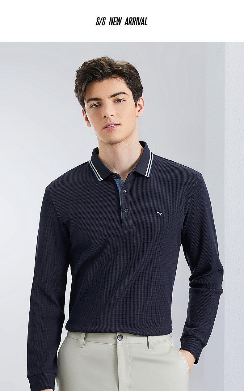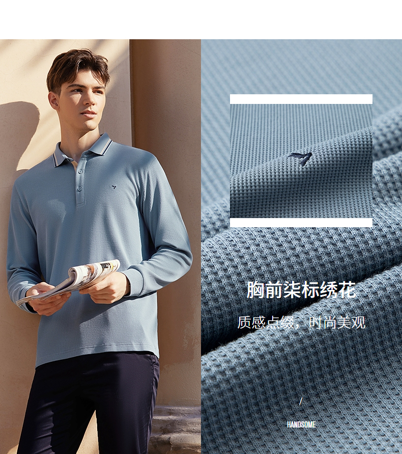 【不变形领】【索罗纳】柒牌华夫格长袖polo衫男2024春季新款商务休闲翻领上衣 126T73030