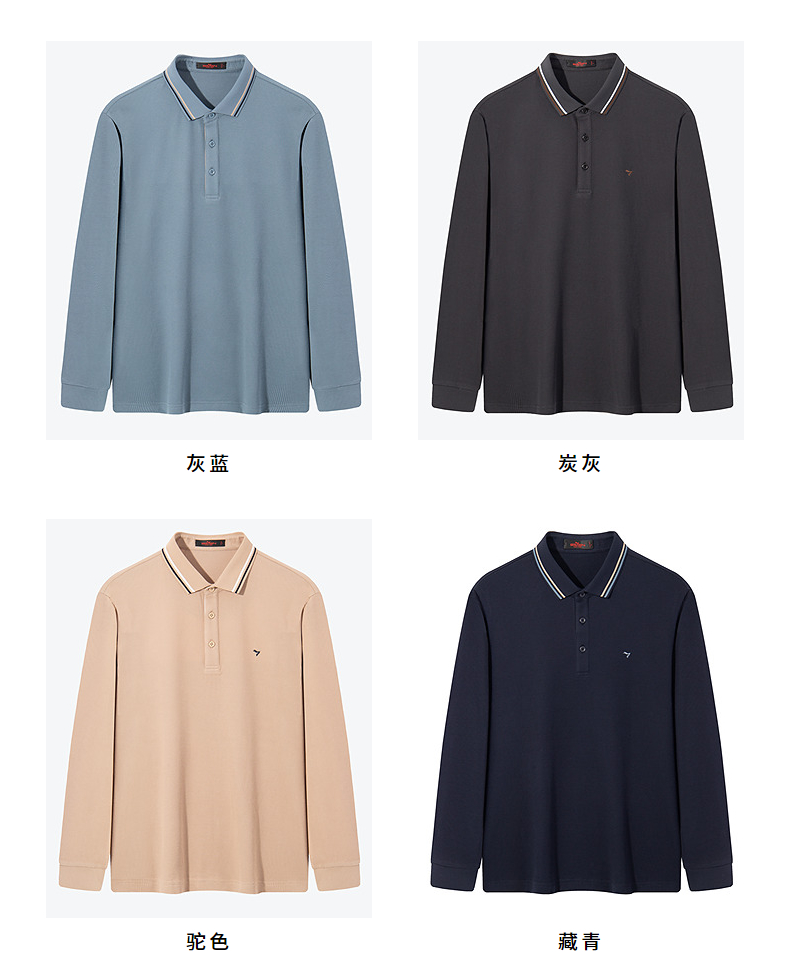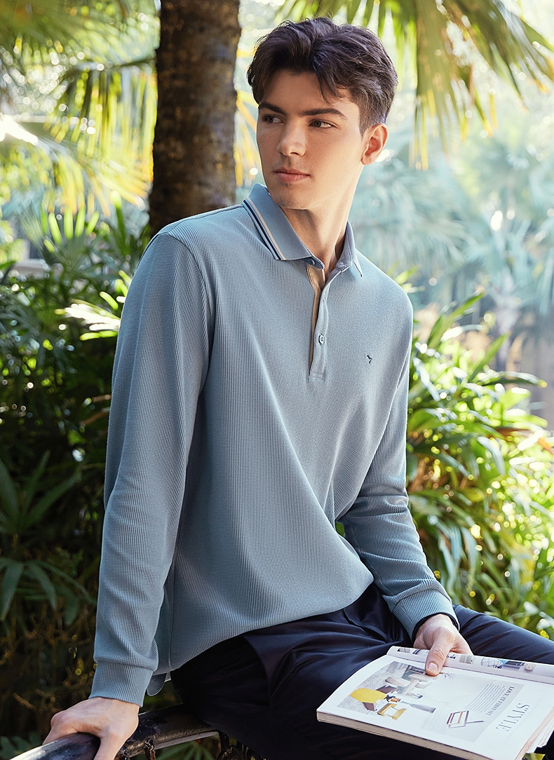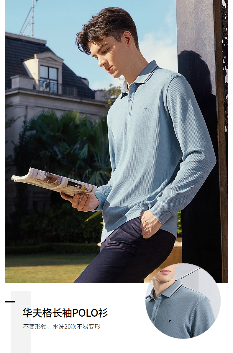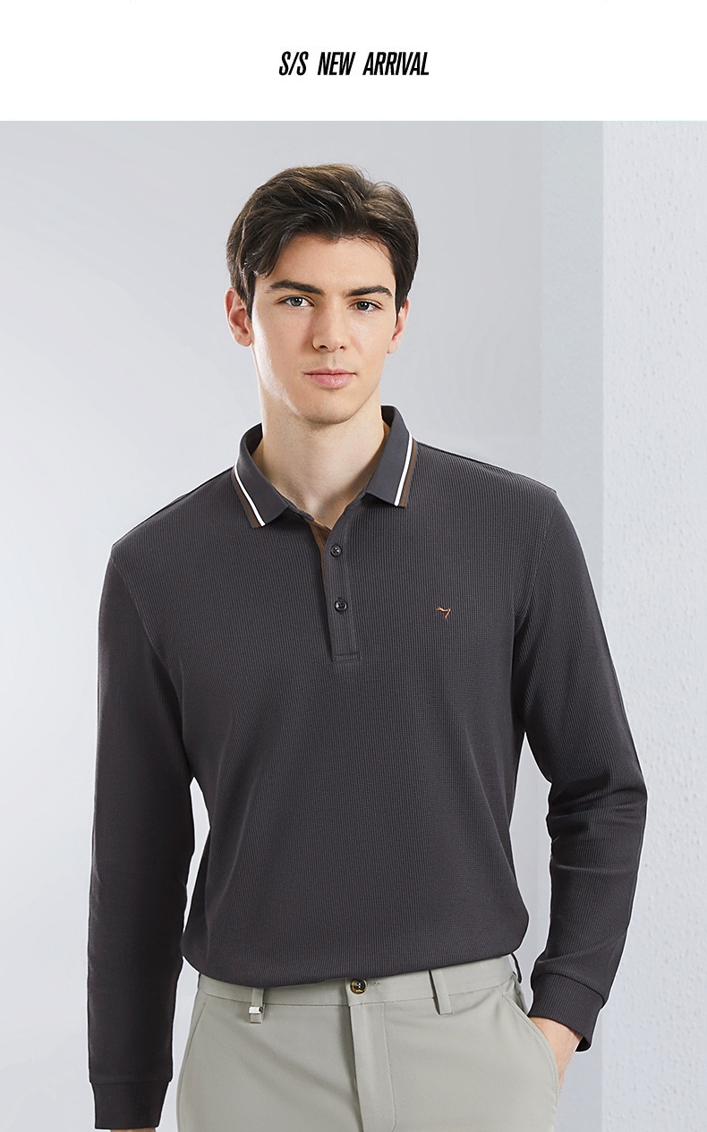 【不变形领】【索罗纳】柒牌华夫格长袖polo衫男2024春季新款商务休闲翻领上衣 126T73030