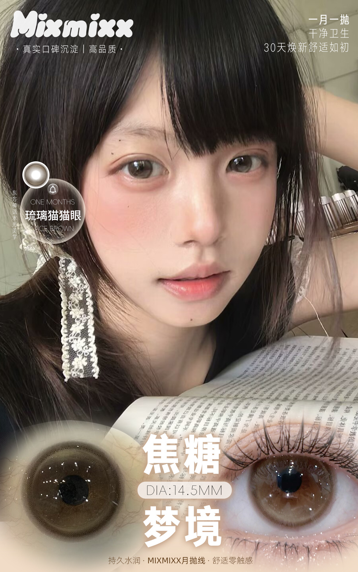 mixmixx月抛 焦糖梦境/古董蕾丝裙/光与夜之恋 14.5mm 非离子 棕巧