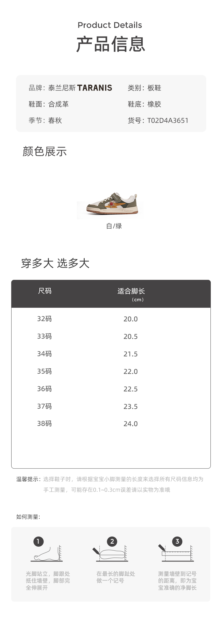 泰兰尼斯春款中大童新潮复古百搭板鞋T02D4A3651