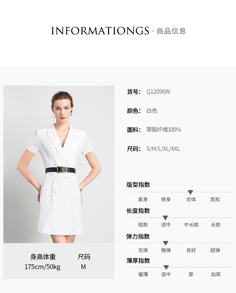 IWY/白色短袖职业连衣裙主持女气场西服ol面试工装服时装公务Q12096W
