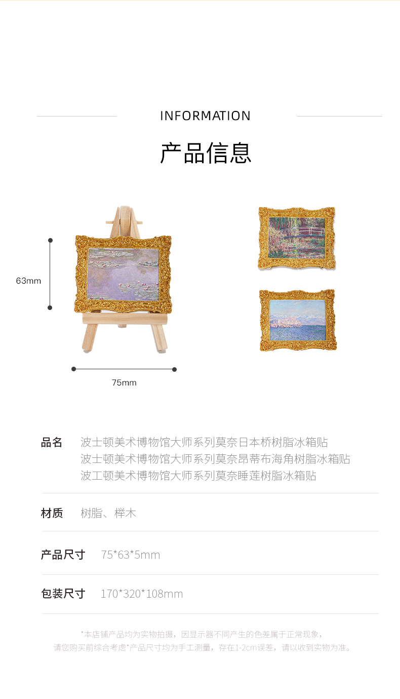 波士顿美术博物馆 大师系列 莫奈日本桥树脂 莫奈昂蒂布海角树脂 莫奈睡莲树脂 冰箱贴