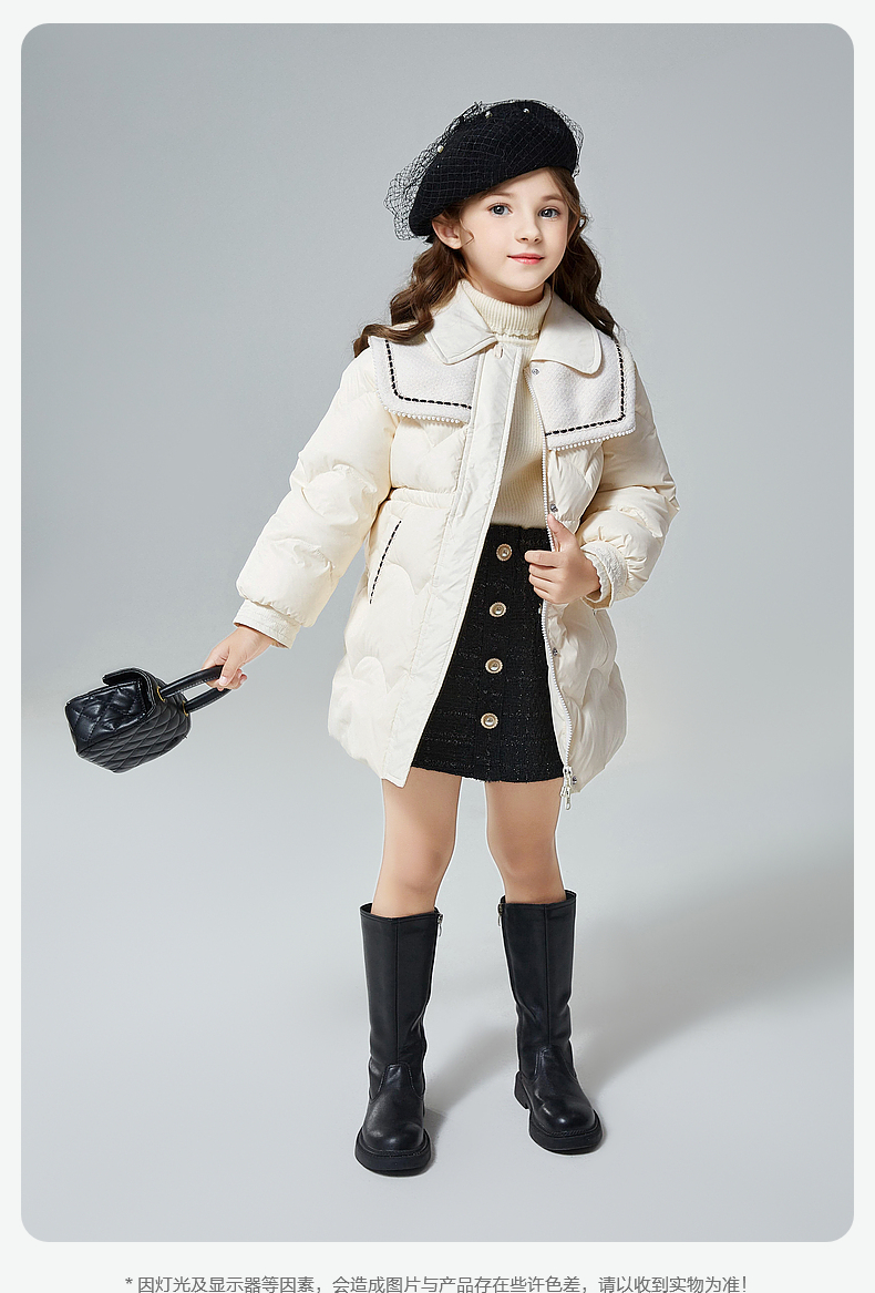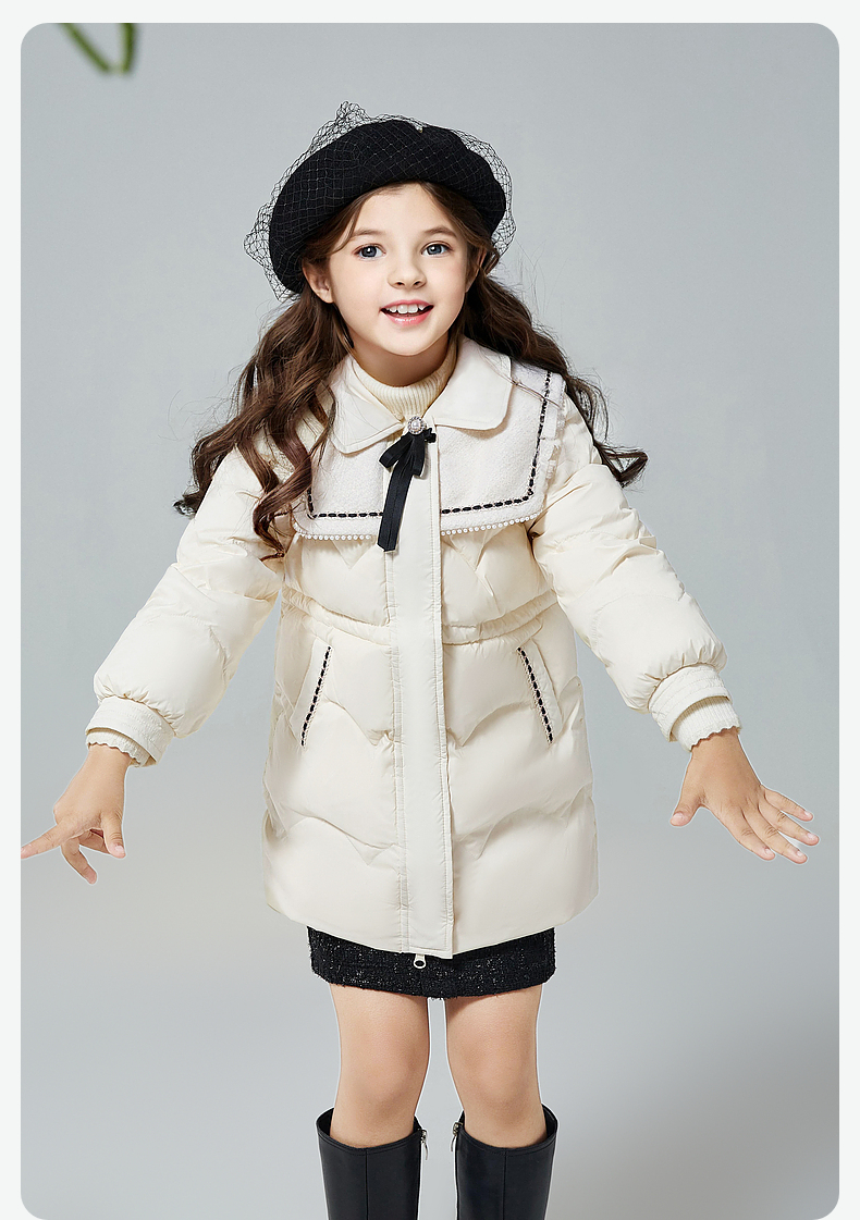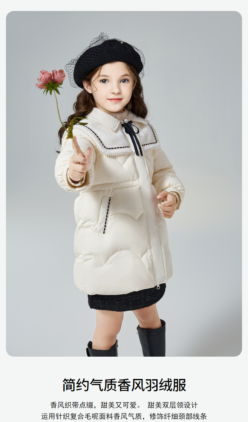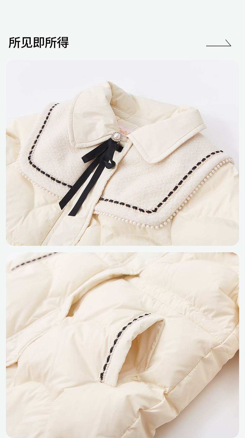 笛莎女童羽绒服2024冬季新款宝宝简约气质香风羽绒服