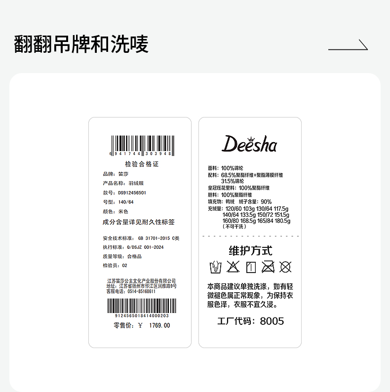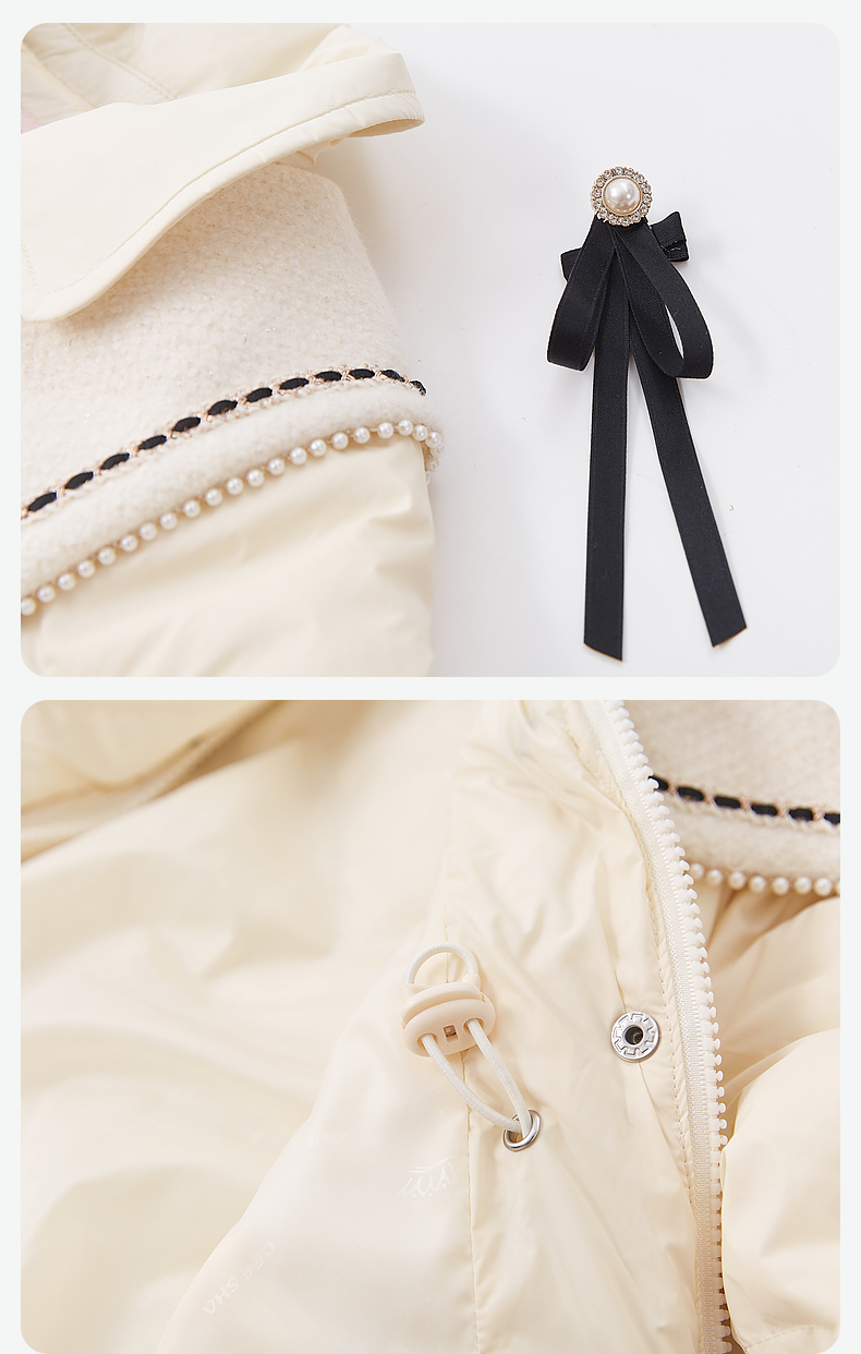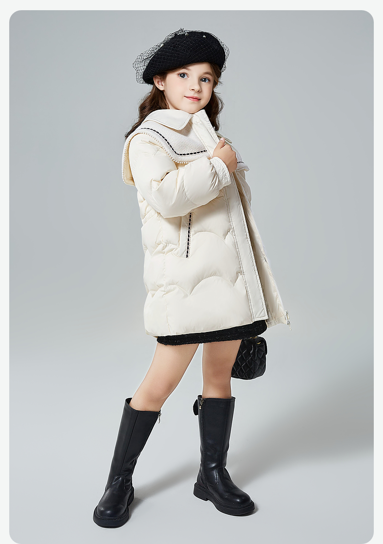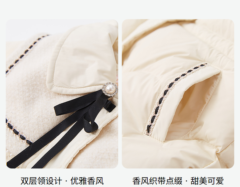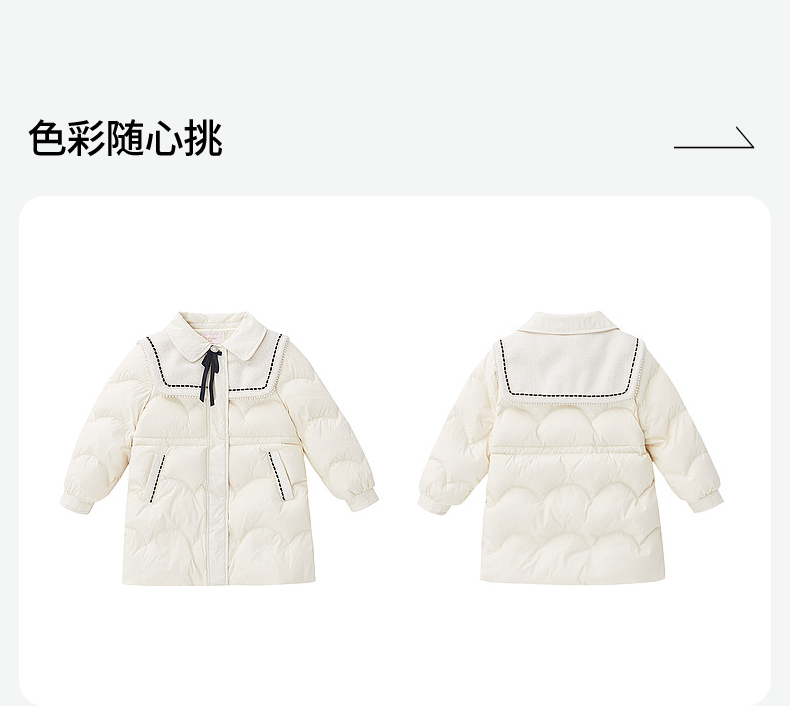 笛莎女童羽绒服2024冬季新款宝宝简约气质香风羽绒服