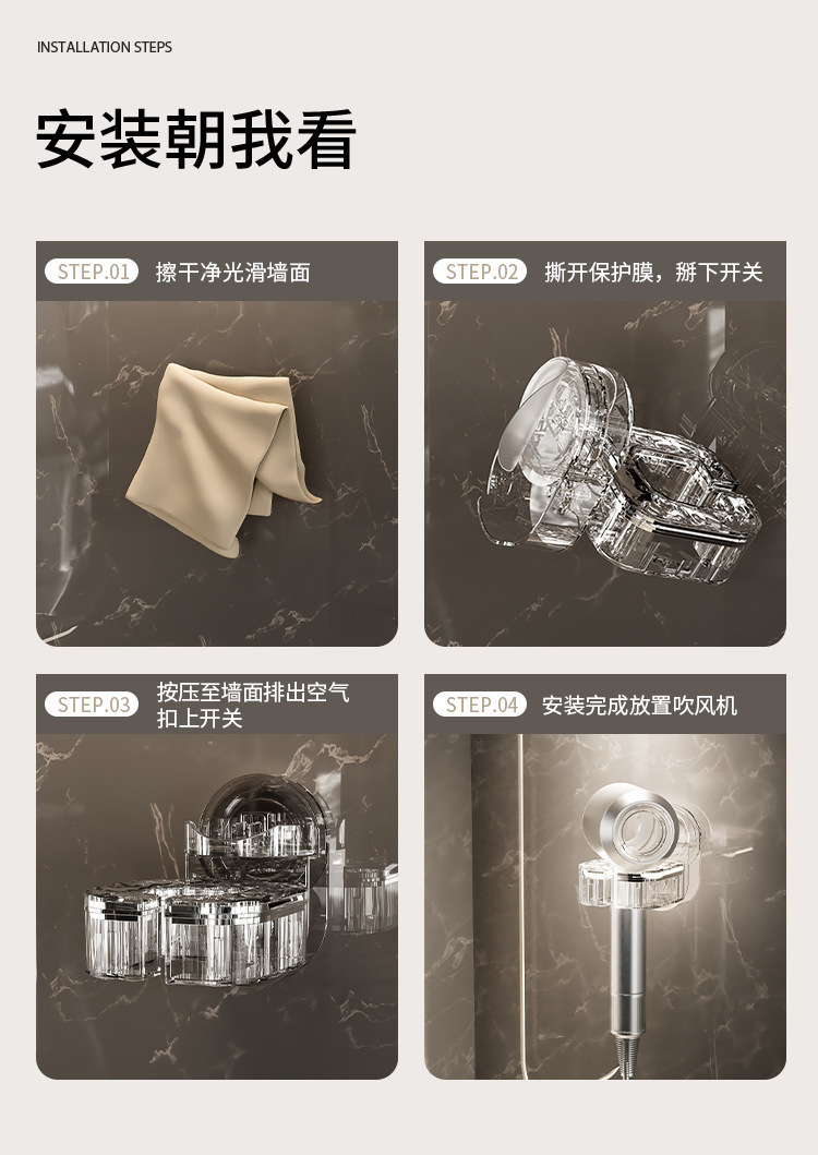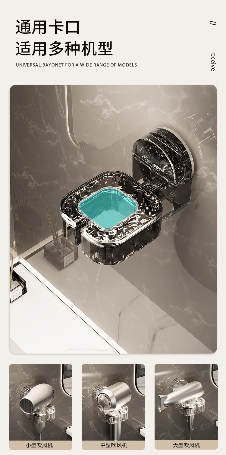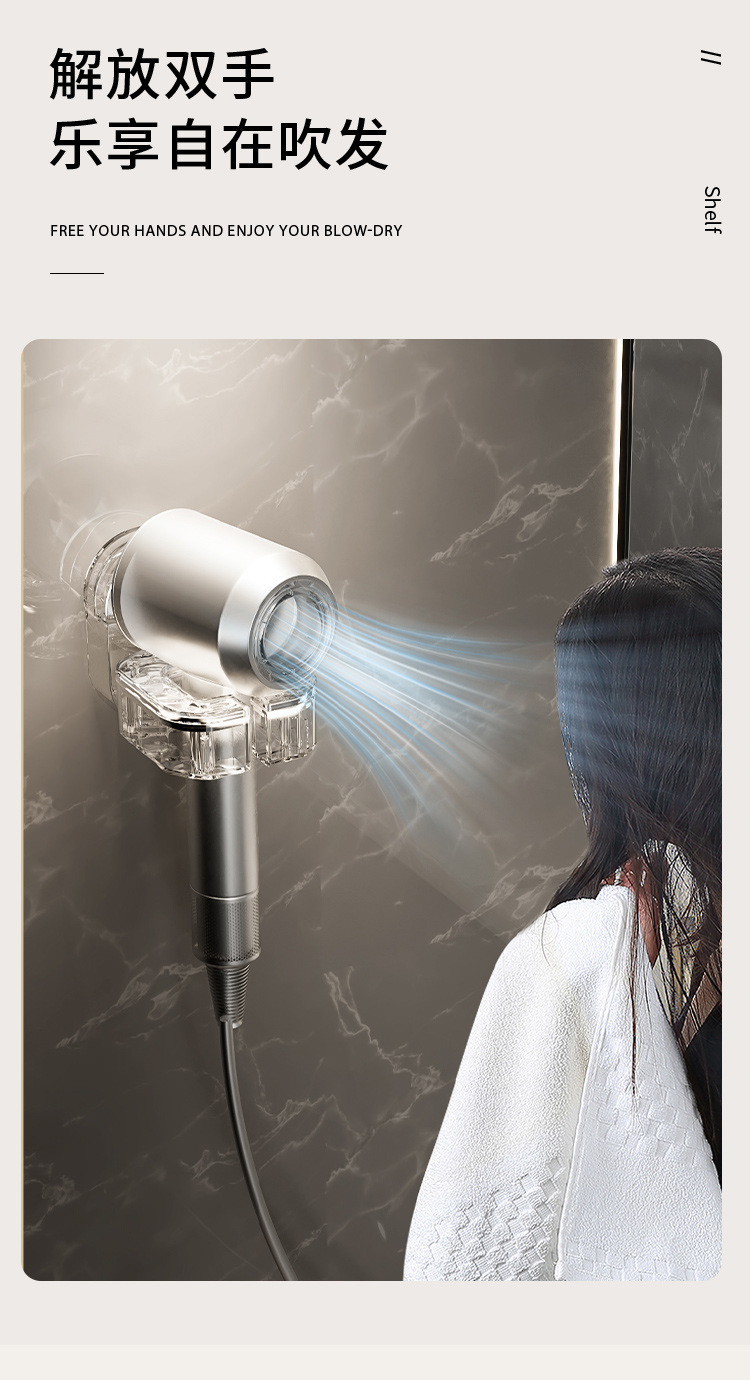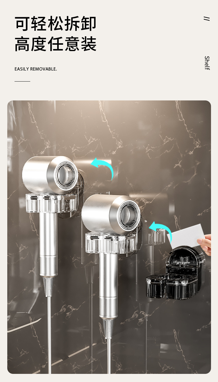 吹风机置物架免打孔壁挂吸盘式旋转懒人电吹风筒收纳支架挂架