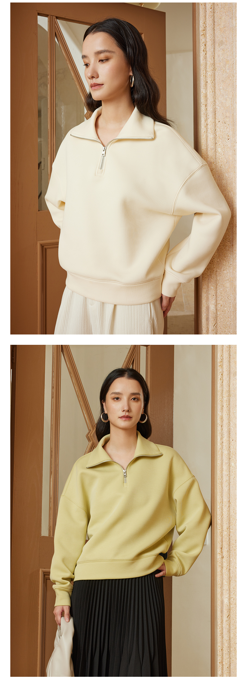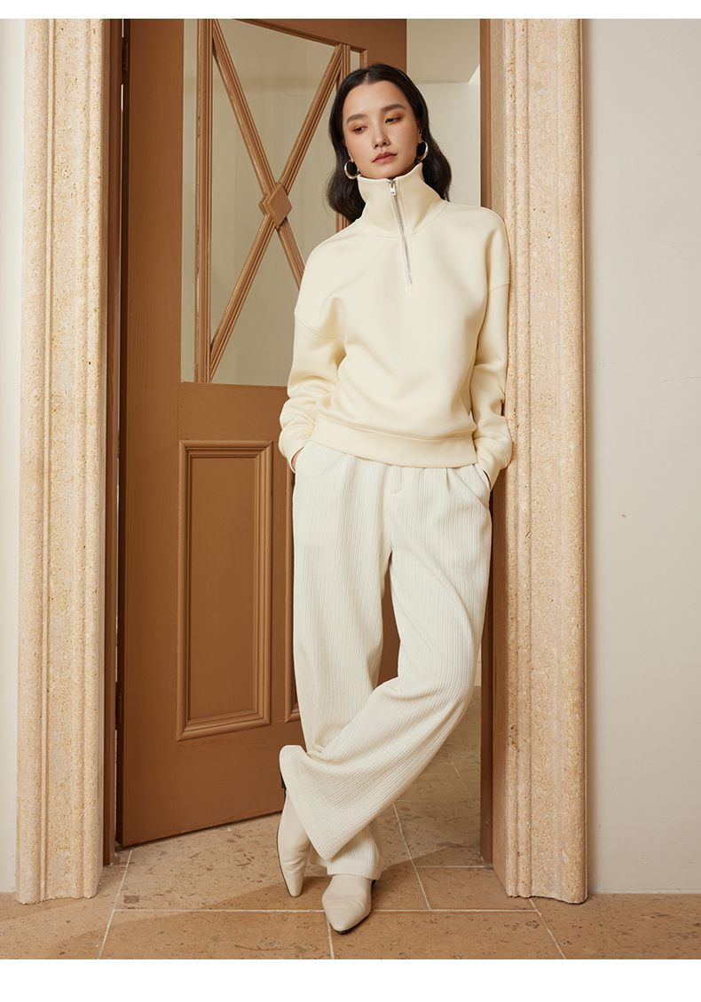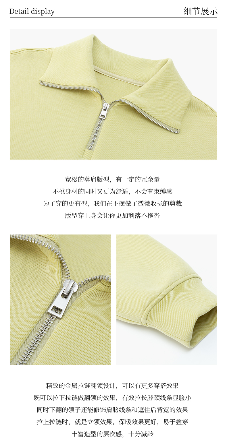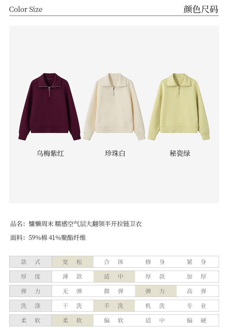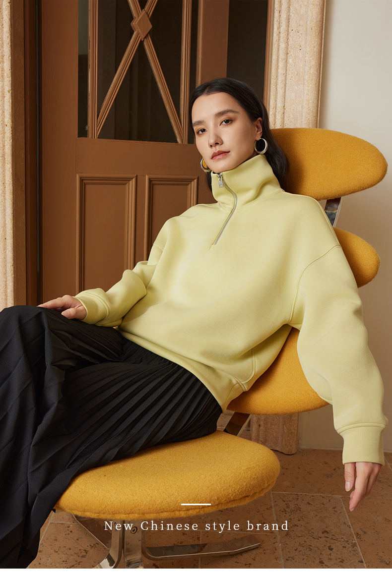 【品牌优选】璞宿PUSU 慵懒周末 糯感空气层大翻领半开拉链卫衣 54669