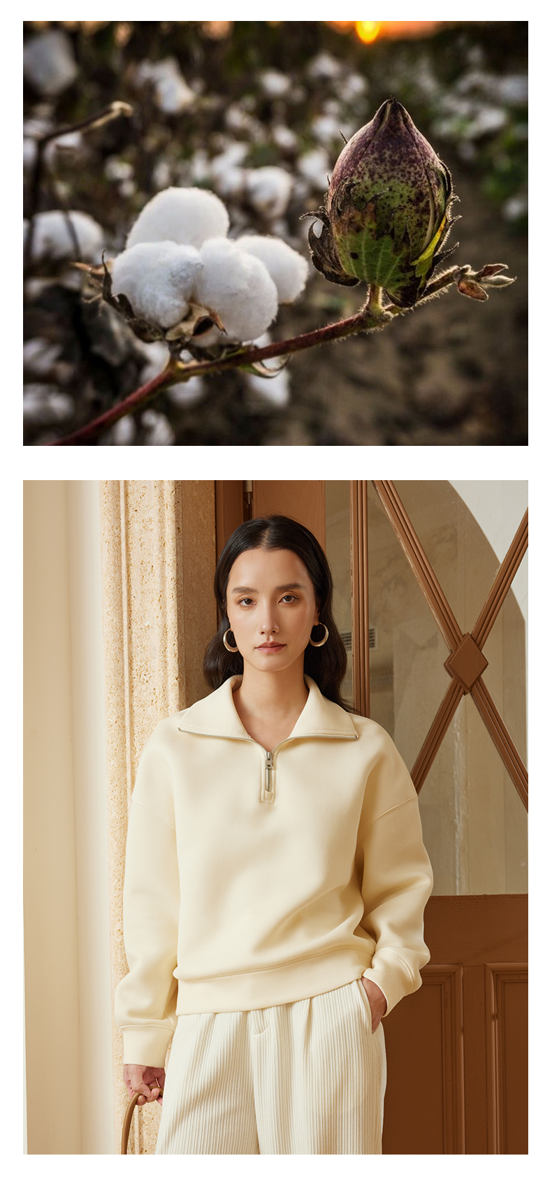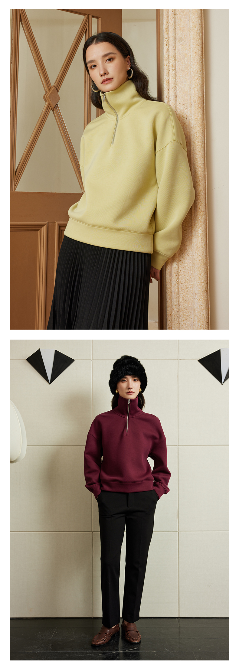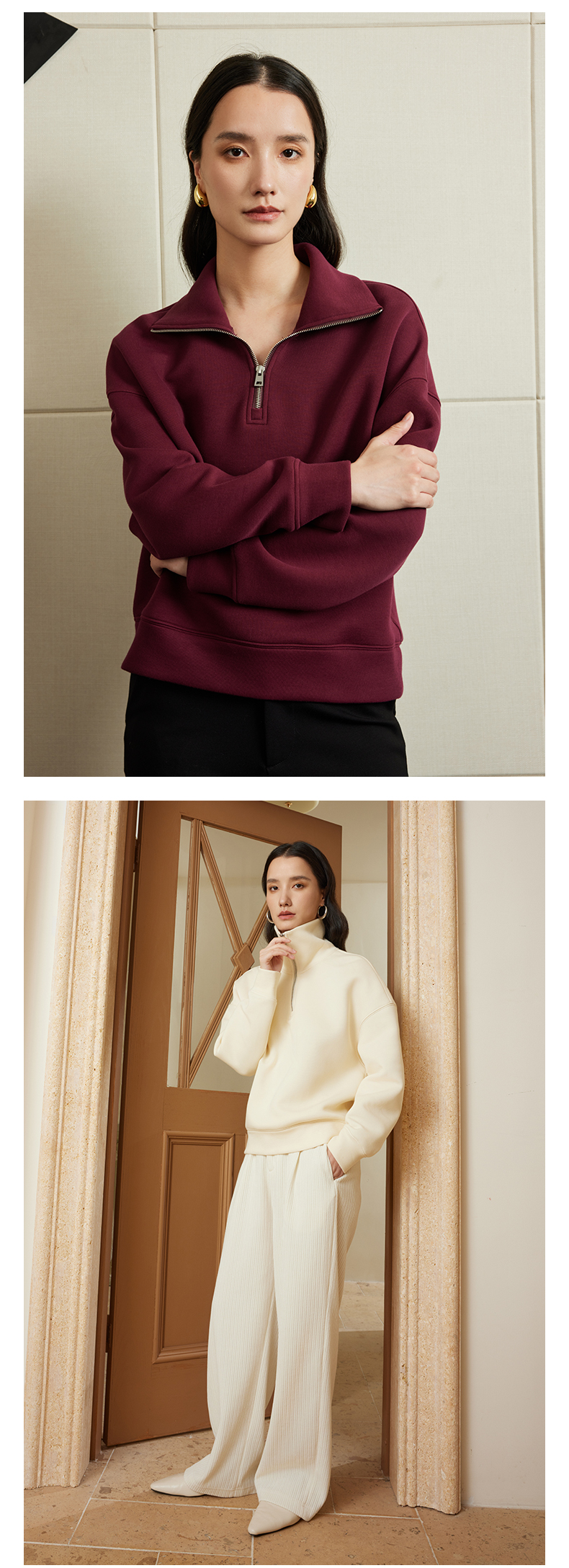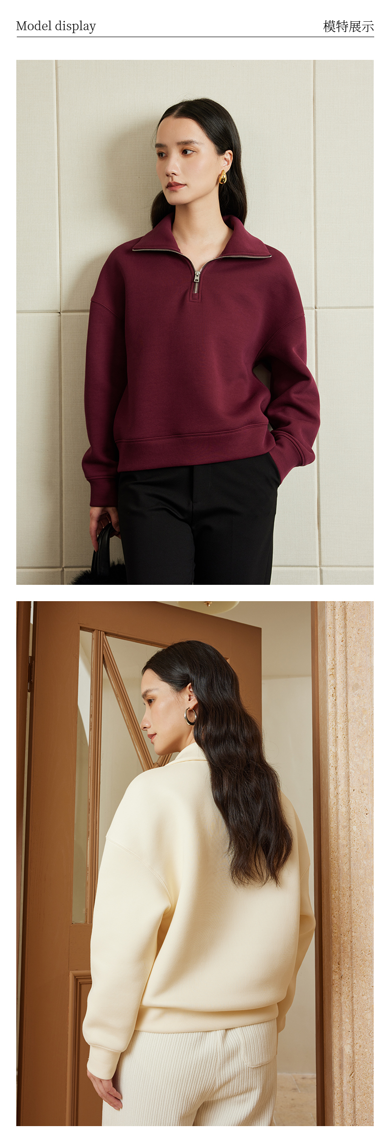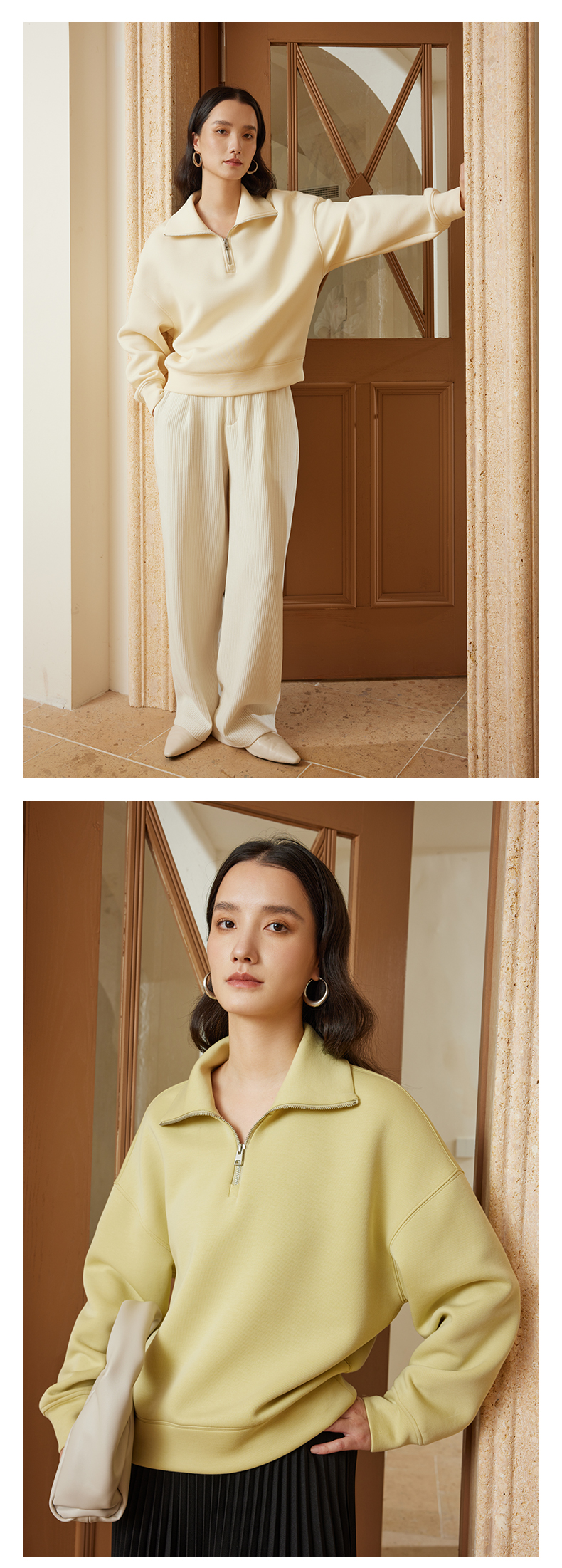 【品牌优选】璞宿PUSU 慵懒周末 糯感空气层大翻领半开拉链卫衣 54669