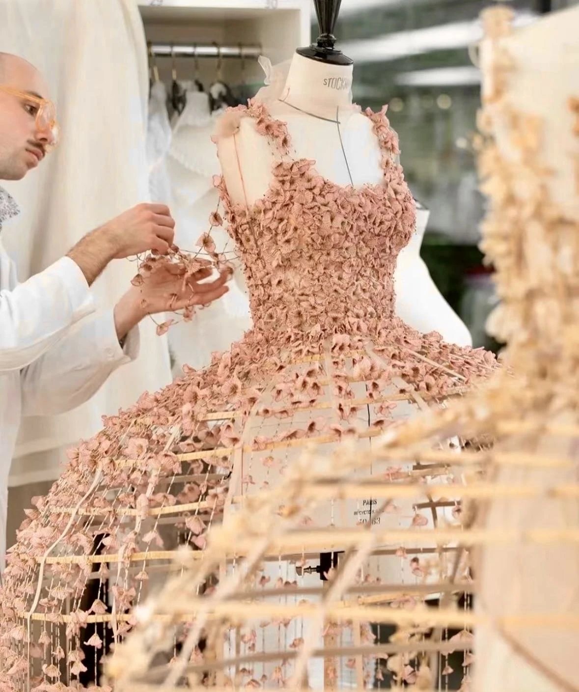 D*ior限定玫瑰季法国奢级工艺半裙❗️⚠️每道褶痕、每朵印花,都是艺术与工艺的共鸣,春夏里的高定艺术品❗️美得毫不费力‼️ 奢级细节⚠️每小时仅产10米面料,30+小时手工雕琢