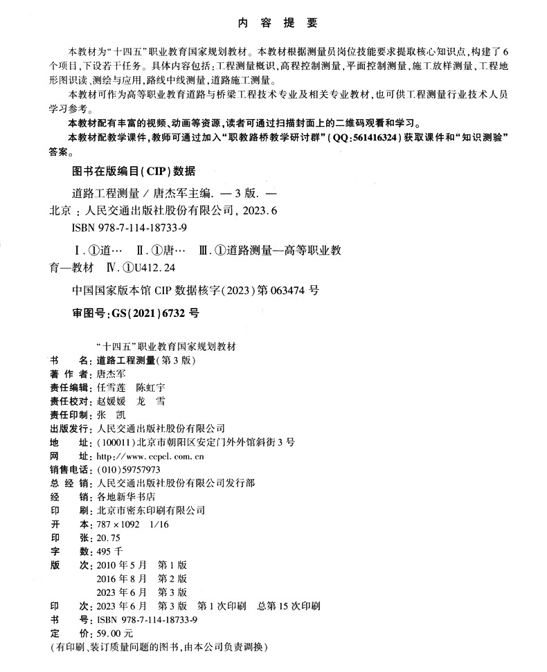 道路工程测量(第3版) 十四五职业教育国家规划教材 人民交通出版社