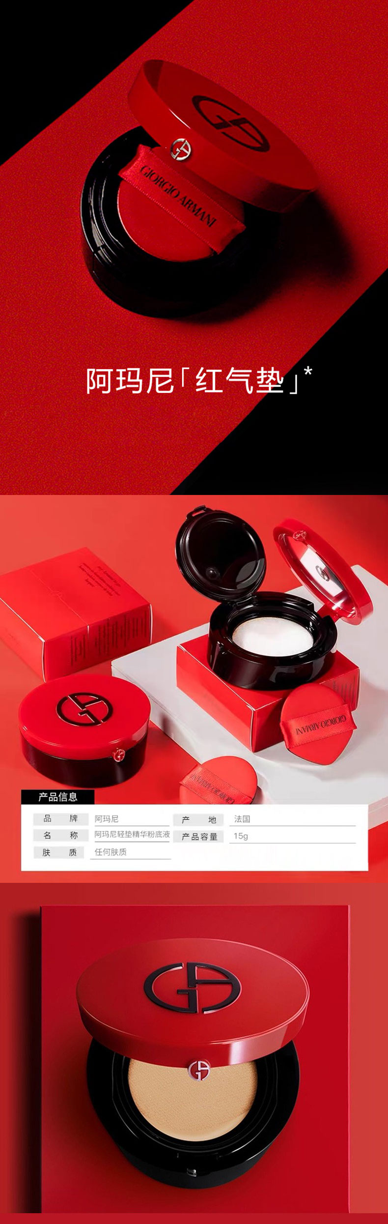【送礼袋】阿玛尼红漆光气垫15g(2号/3号)+阿玛尼红管405烂番茄6.5ml 一般贸易