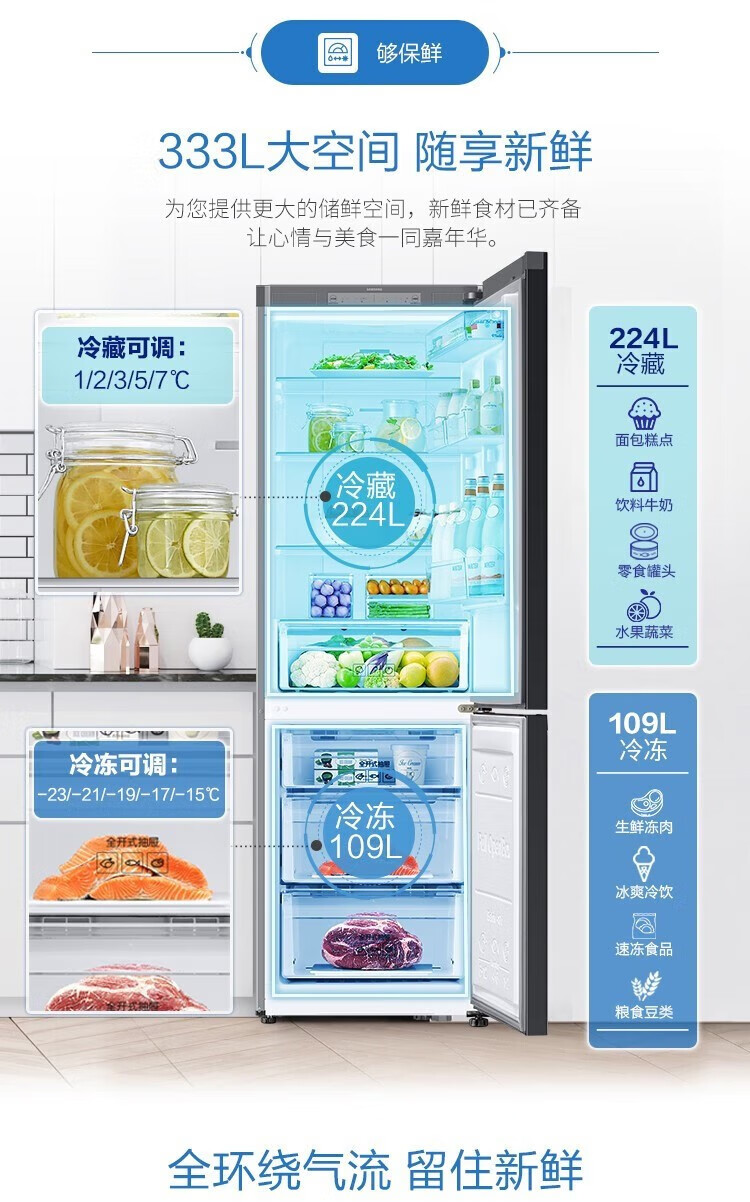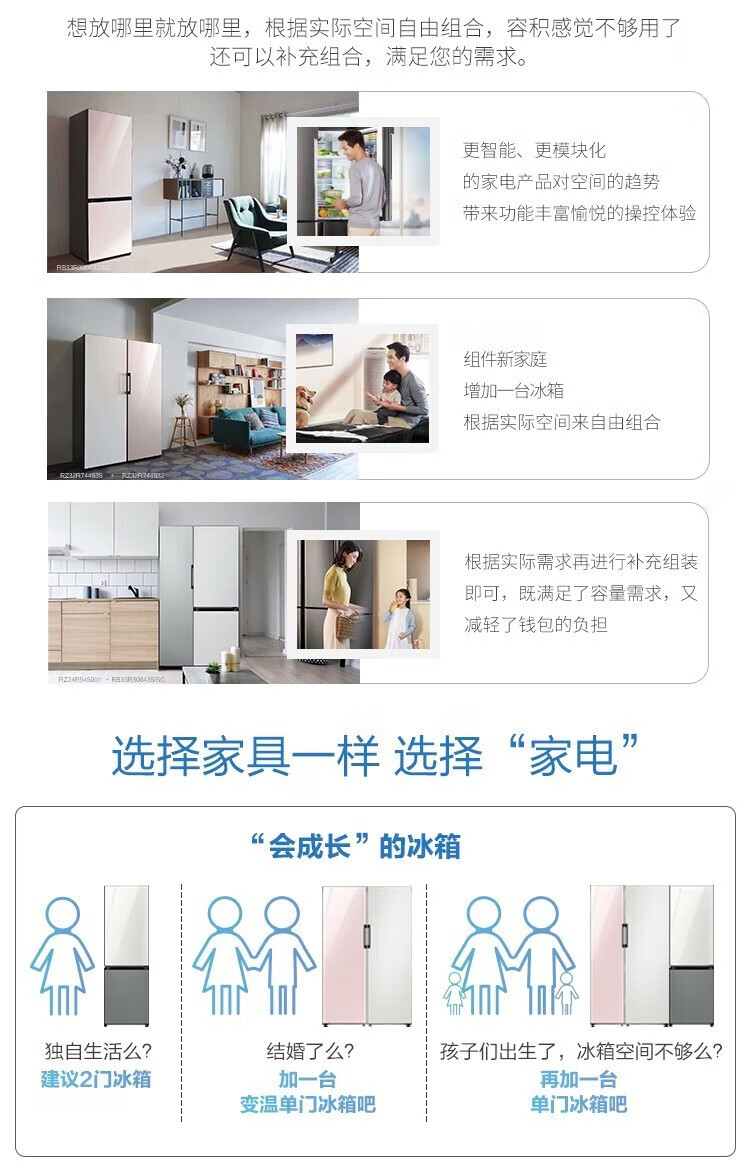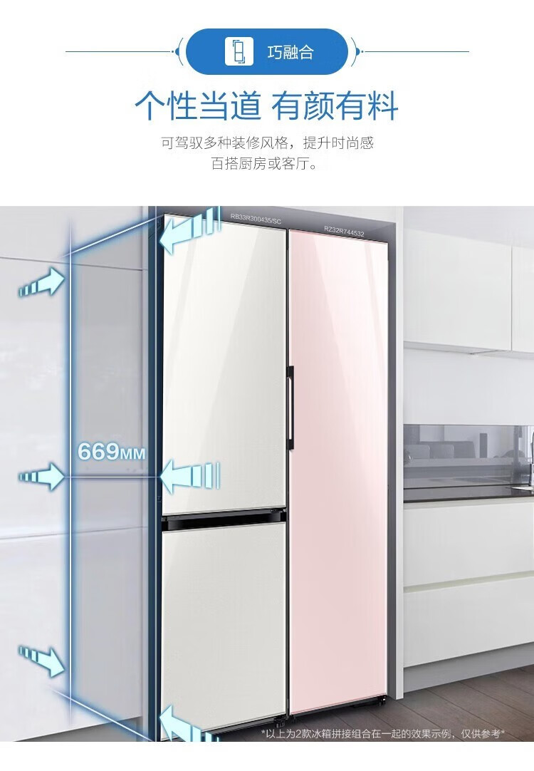 【618秒杀】三星(SAMSUNG)原装进口自由拼接智能变频嵌入式冰箱 风冷无霜 冷冻冷藏自由切换 RZ32R744532/SC 323升 赠800元话费