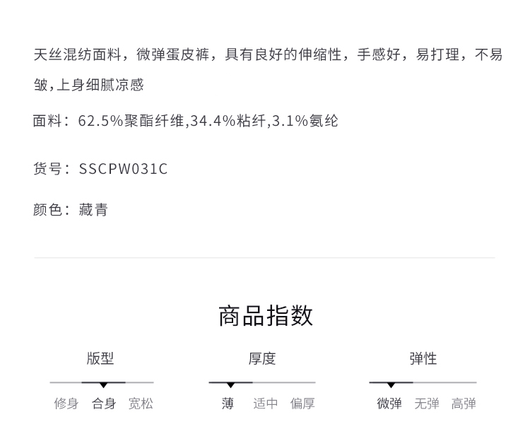 callisto藏青天丝混纺休闲裤 SSCPW031C