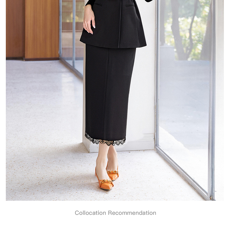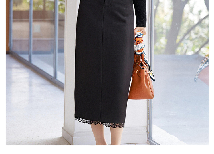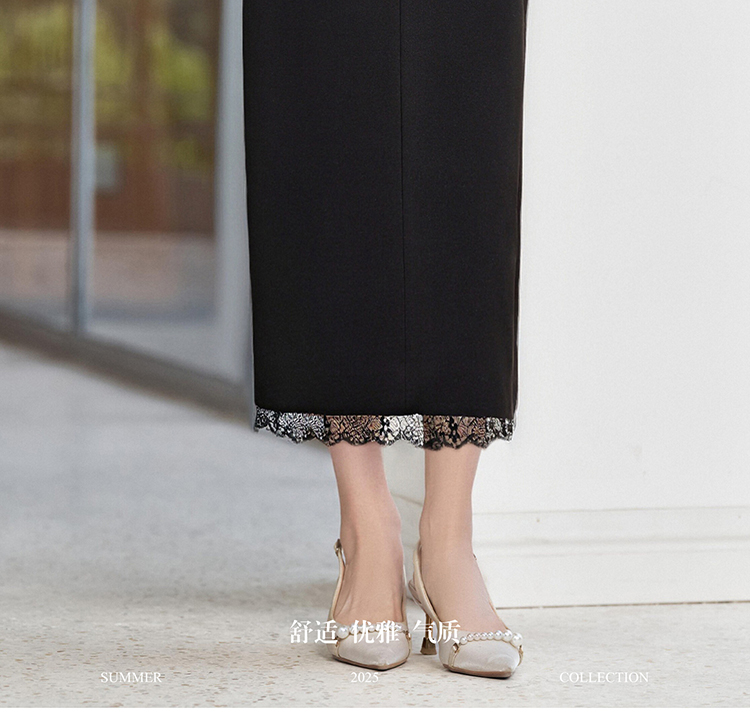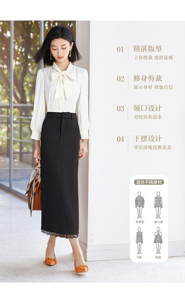 剩S/M/L 米思阳2026春新品优雅通勤风蕾丝拼接半身裙天丝弹力舒适百搭直筒裙子女4757