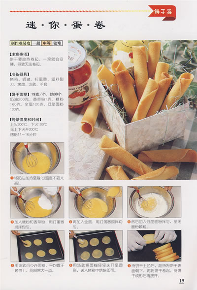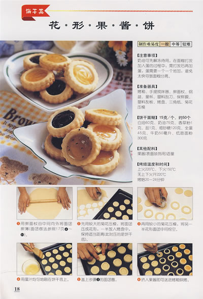 &n*sp;&n*sp; 目录 作者简介<*r>作者序<*r>基础篇<*r> 器具介绍<*r> 材料介绍<*r> 注意事项与准备工作<*r> 烤盘纸的裁法<*r> 注意事项<*r> 事前准备<*r> 简易挤花袋<*r> 发泡奶油打发<*r> 发泡鲜奶油打发<*r> 蛋白的发泡程度<*r> 全蛋的发泡程度<*r> sos问答集<*r>1 饼干类<*r> 卡通饼干<*r> 造型饼干<*r> 花形果酱饼<*r> 迷你蛋卷<*r> 夹心饼<*r> 巧克力帽小点l<*r> 蛋白椰子薄饼<*r> 红莓小点<*r> 杏仁烤饼<*r> 巧克力夹心饼<*r> 玉米碎片<*r> 消化饼干<*r> 蛋白饼<*r> 马铃薯煎饼<*r>2 面糊类<*r> 苹果满天星<*r> 小红莓杯<*r> 夏威夷蛋糕<*r> 金橘蛋糕<*r>3 乳沫类<*r> 小熊蛋糕<*r> 双色蛋糕杯<*r> 黄金玉米蛋糕<*r> 甜杏蛋糕杯<*r> 蜂蜜蛋糕<*r> 巧克力金字塔<*r>4 威风类<*r> 戚风蛋糕基本做法<*r> 戚风蛋糕<*r> 戚风水果卷<*r> 轻松麦芬<*r> 日式乳酪蛋糕<*r> 心形乳酪蛋糕<*r>5 蛋糕装饰类<*r> 卡通蛋糕虎<*r> 宴会小蛋糕<*r> 双层生日蛋糕<*r> 脆皮巧克力樱桃蛋糕<*r> 卡通造型蛋糕<*r>6 创意点心类<*r> 炖烤椰奶<*r> 乳酪小蛋糕<*r> 草原麦芬<*r> 烤乳酪布丁<*r>7 小塔点心类<*r> 草莓塔<*r> 轻舟坚果塔<*r> 蔬莱塔<*r>8 蒸的点心类<*r> 双色凉圆<*r> 乳酪蒸蛋糕<*r> 水果造型糕仔<*r> 成蒸糕<*r>9 炸的点心类<*r> 螺丝卷<*r> 地瓜球<*r> 蛋糕甜甜圈<*r>10 煎的点心类<*r> 水果茶巾包<*r> 日式蛋糕包<*r> 烤吐司<*r> 心形煎饼<*r> 鲷鱼烧<*r> 车轮饼<*r> 戚风煎蛋糕<*r>11 甜汤类<*r> 手工芋圆<*r> 仙草冻<*r> 椰汁西米*<*r> 杏仁豆腐<*r> 绿豆软糕<*r>12 糖果类<*r> 水果软糖<*r> 棉花球<*r> 凉糕<*r> 绿茶糖<*r> 牛奶糖<*r> 双色软糖<*r> 黑枣软糖<*r>13 慕斯蛋糕类<*r> 香橘慕斯<*r> 巧克力镜面慕斯<*r> 巧克力卡通慕斯<*r> 酒汁樱桃慕斯<*r> 卡通慕斯杯<*r> 卡布奇诺慕斯杯<*r>14 冰淇淋类<*r> 香草冰激凌<*r> 甜筒核桃冰激凌<*r> 酒汁樱桃冰激凌<*r> 芒果冰激凌<*r> 脆皮巧克力冰棒<*r> 巧克力冰激凌<*r>15 冰品类<*r> 水果冰棒<*r> 拟真橙子冻<*r>16 巧克力<*r> 坚果巧克力<*r> 巧克力饼<*r> 心形巧克力<*r> 双色巧克力杯<*r> 巧克力杯<*r> 梦幻白巧克力球<*r> 彩色巧克力球<*r> 长条巧克力<*r> 三角巧克力<*r> 造型巧克力