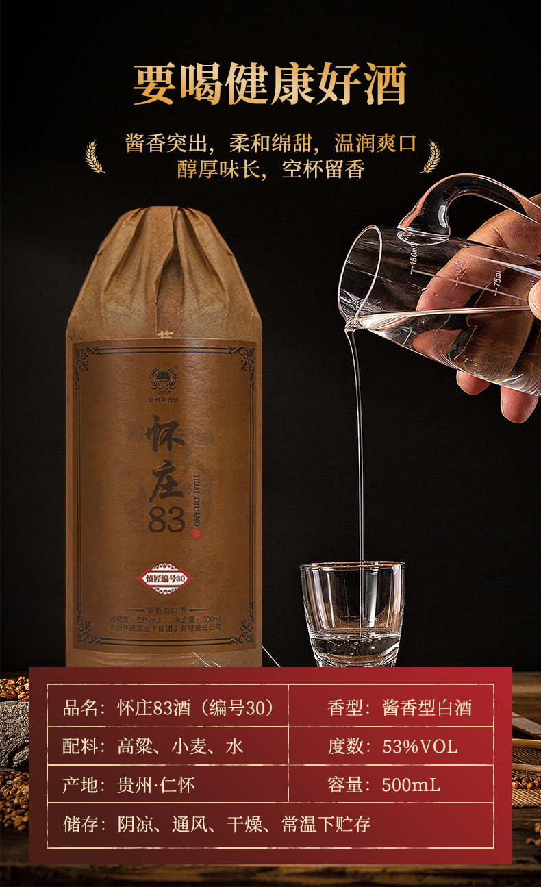 怀庄83(30) 酱香型53度 500ML 茅台镇怀庄酒业出品