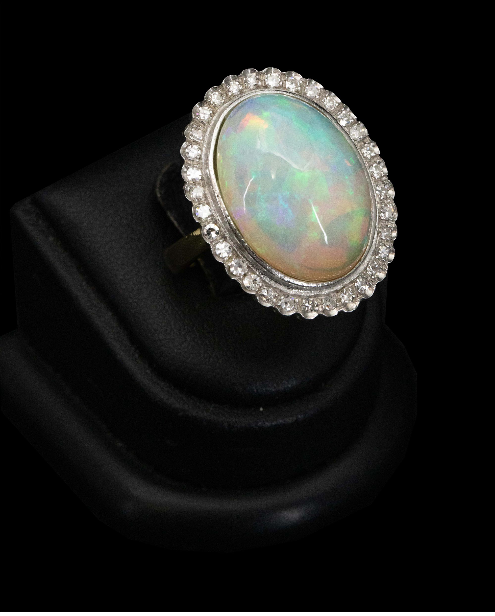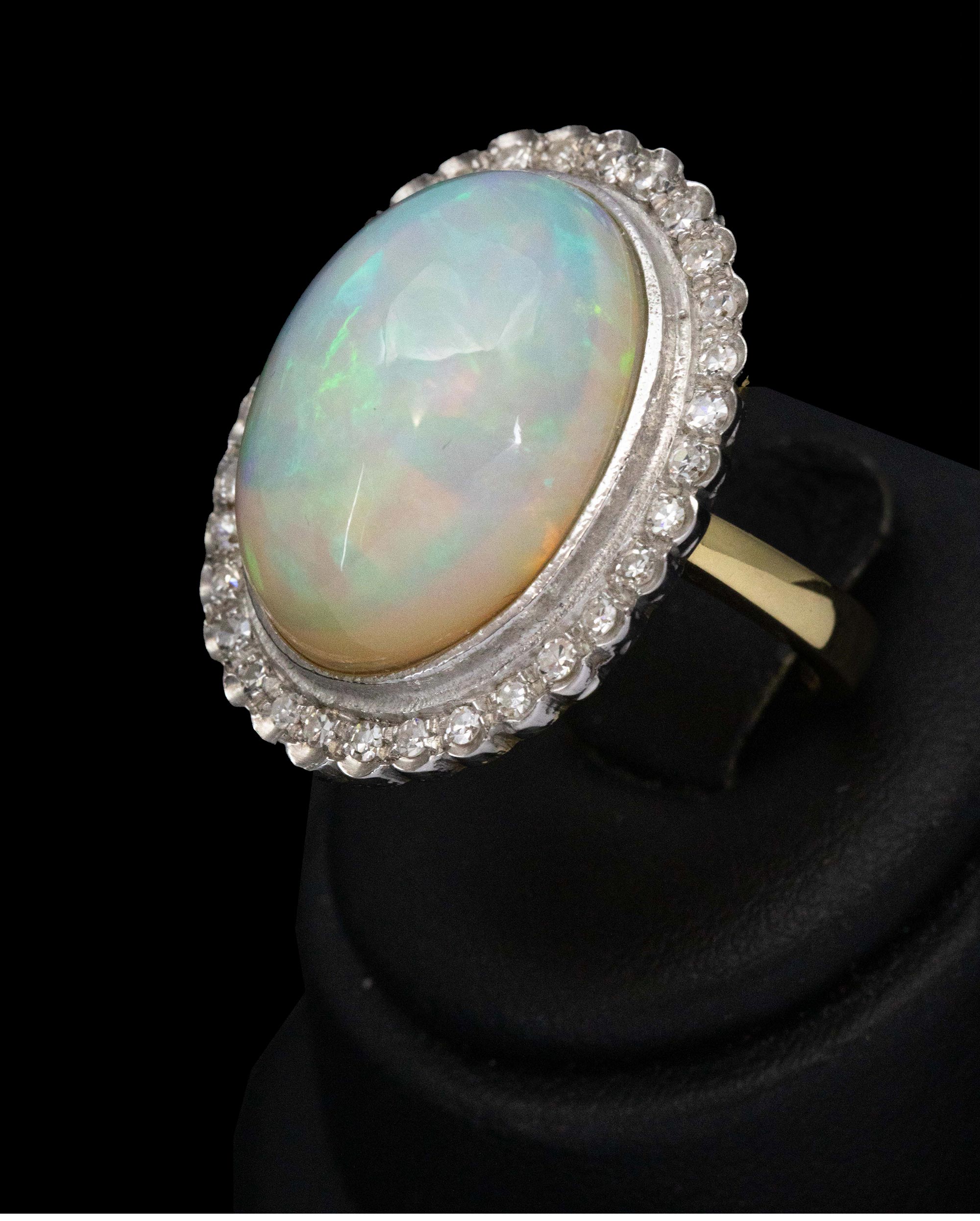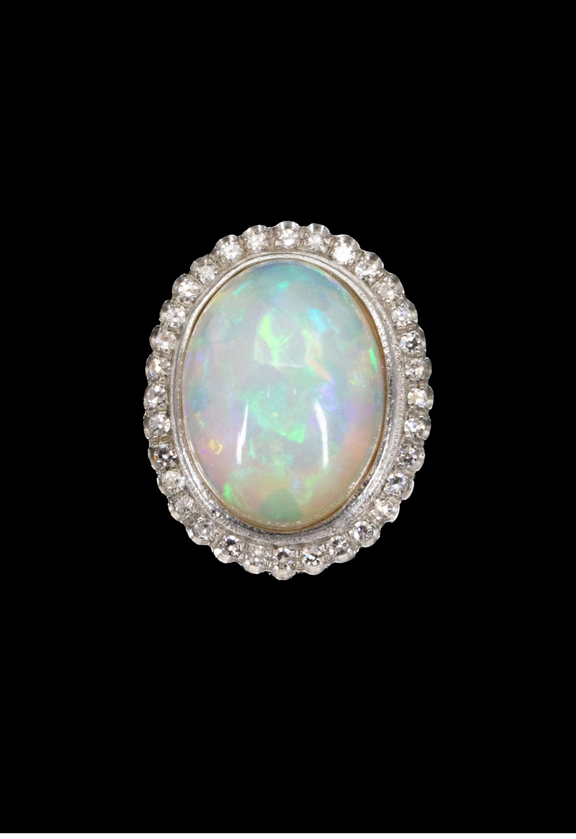 1950年代法国出品18K黄金镶嵌欧泊石及钻石戒指