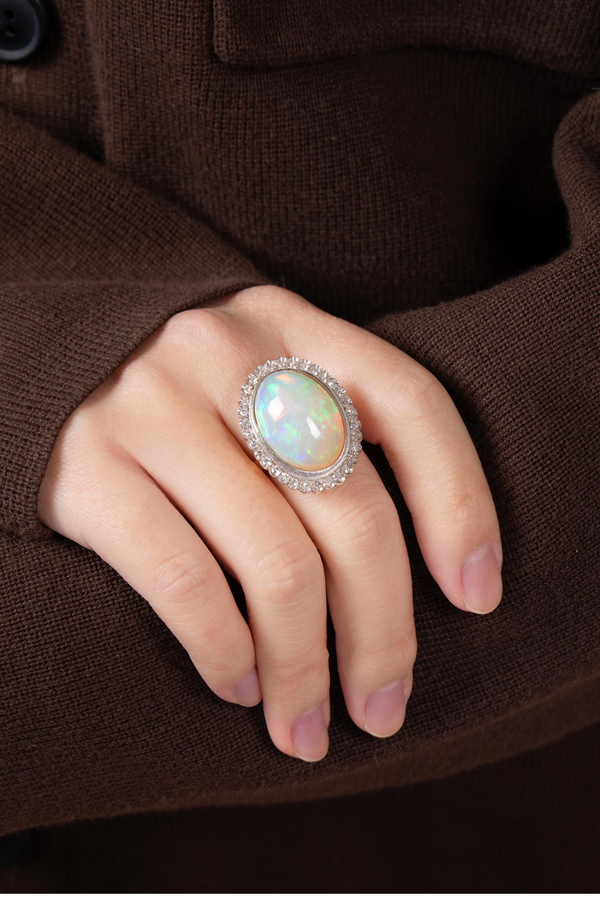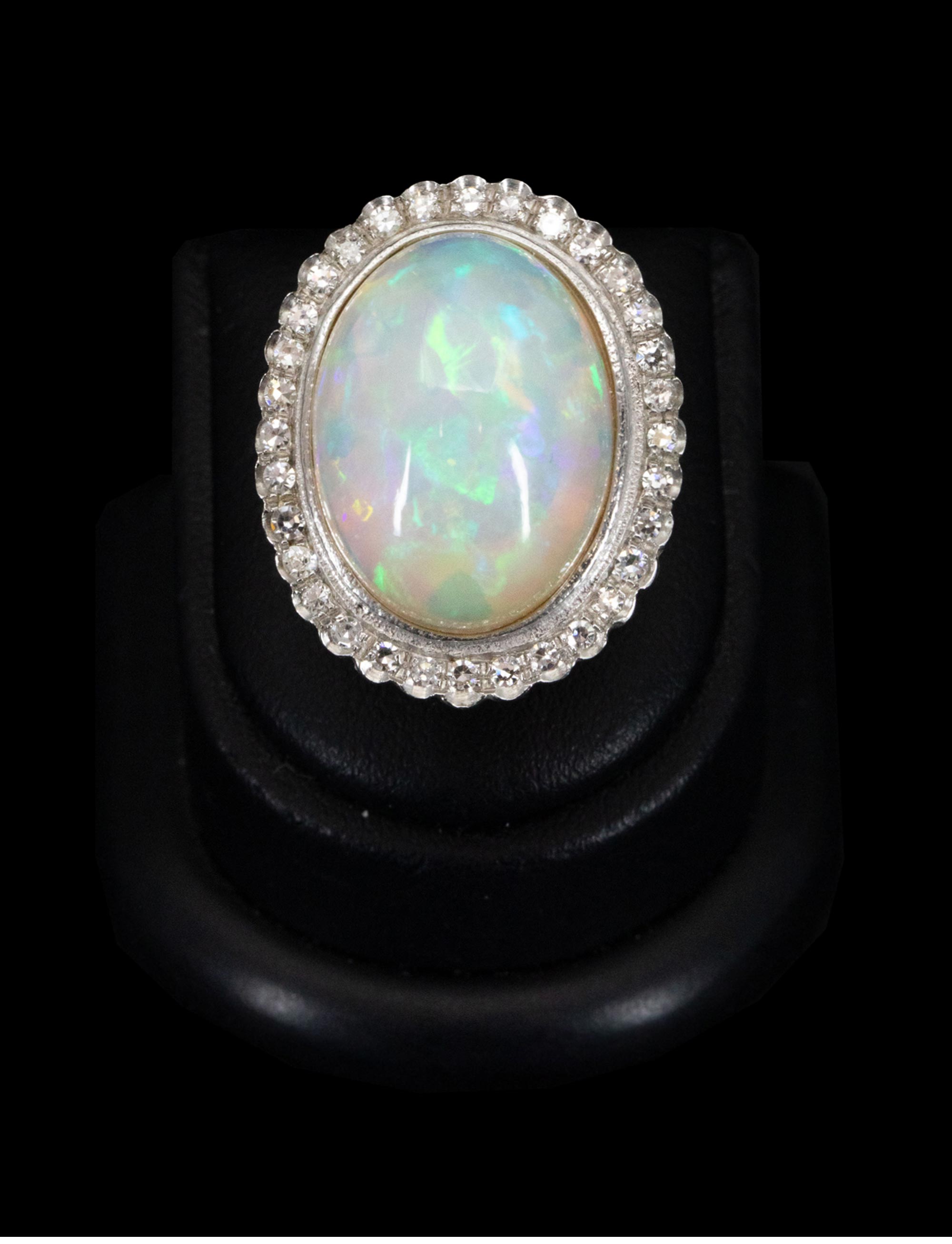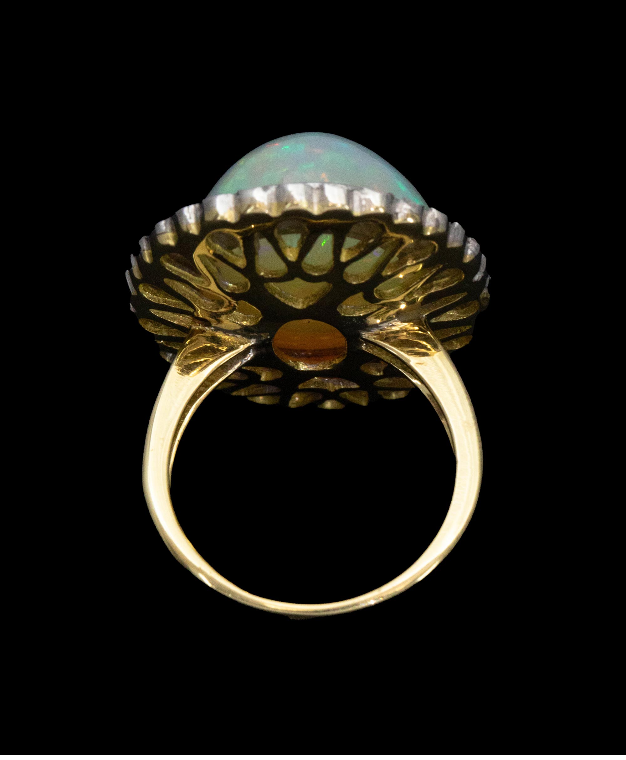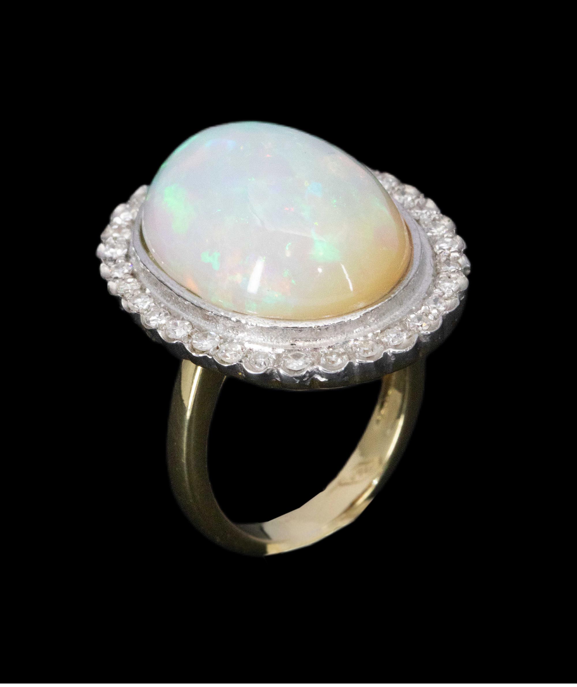 1950年代法国出品18K黄金镶嵌欧泊石及钻石戒指
