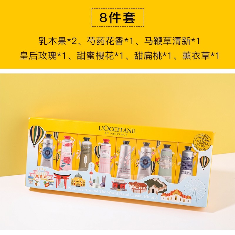 【秋冬限定】法国 L'OCCITANE欧舒丹 护手霜30ml*8件套 套装(乳木果*2+芍药+马鞭草+玫瑰+樱花+杏仁+薰衣草)