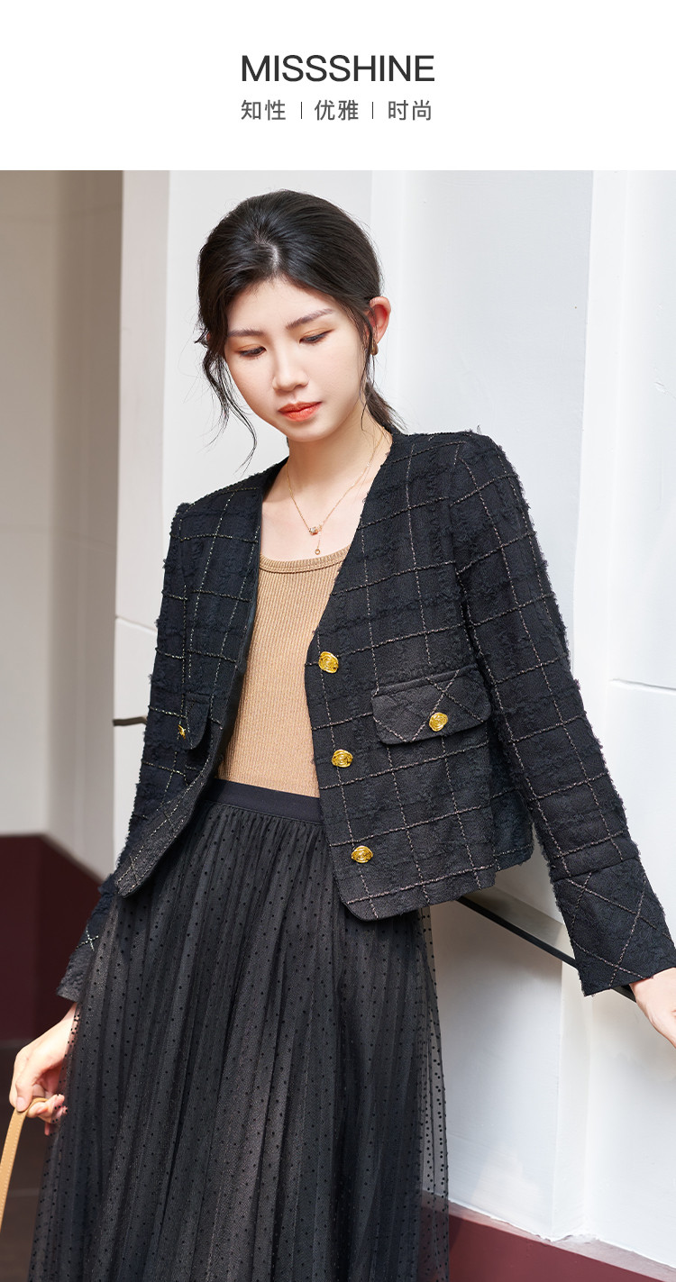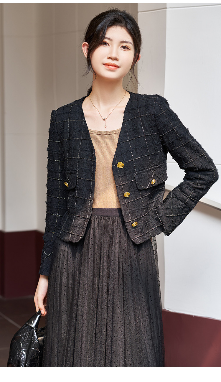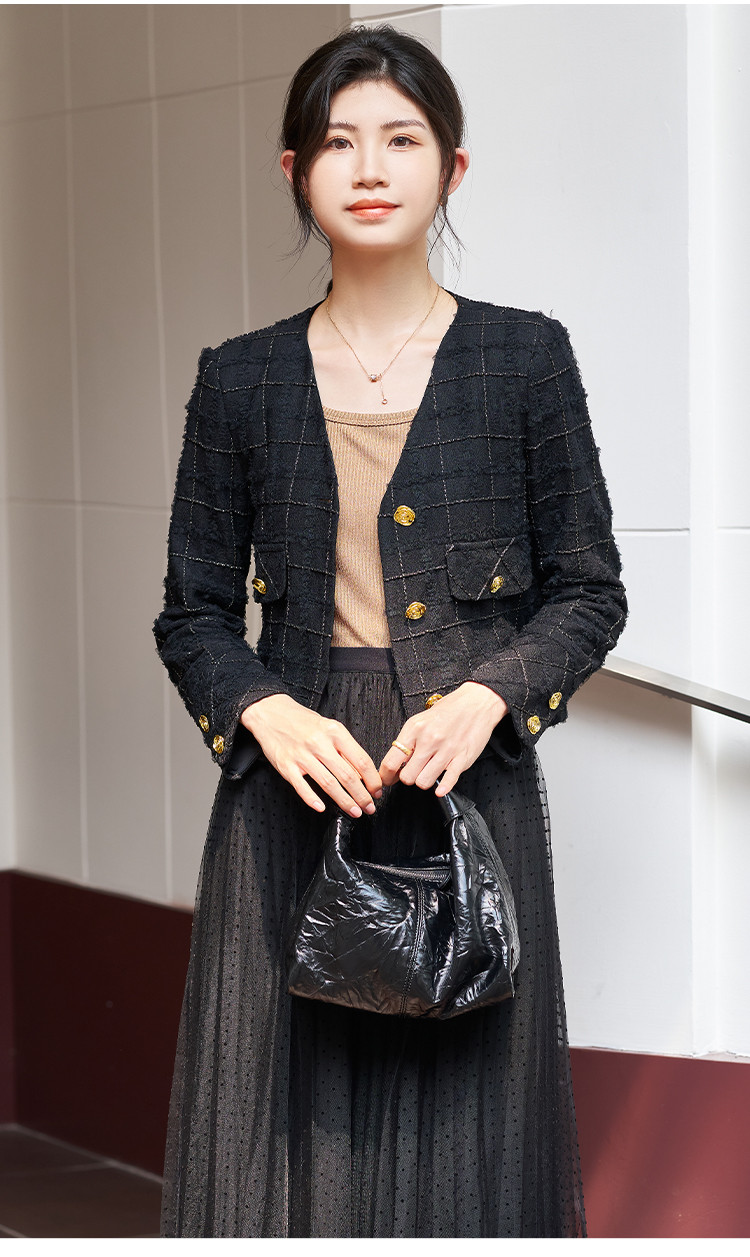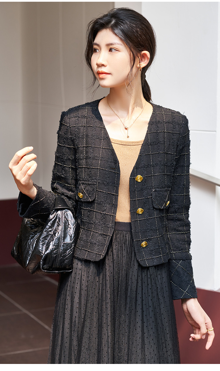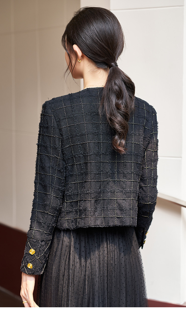 【复古小香外套】米思阳2026春季法式赫本格纹柔软弹力蕾丝面料 定制金葱混纺格纹1914