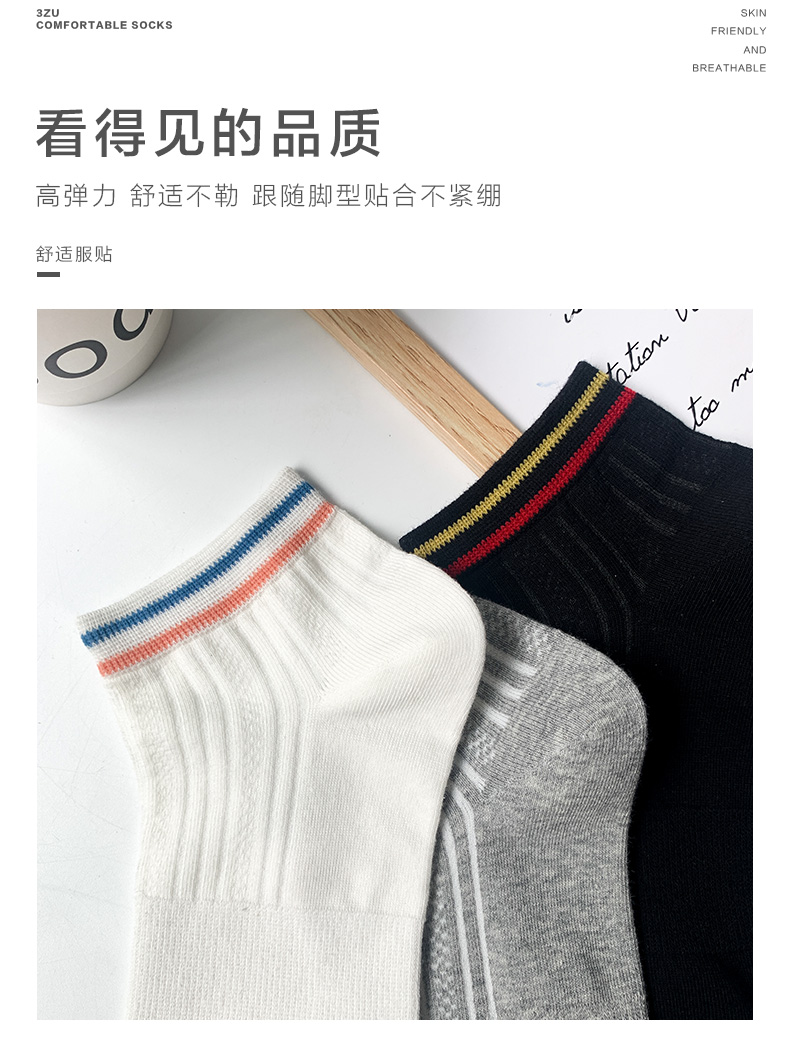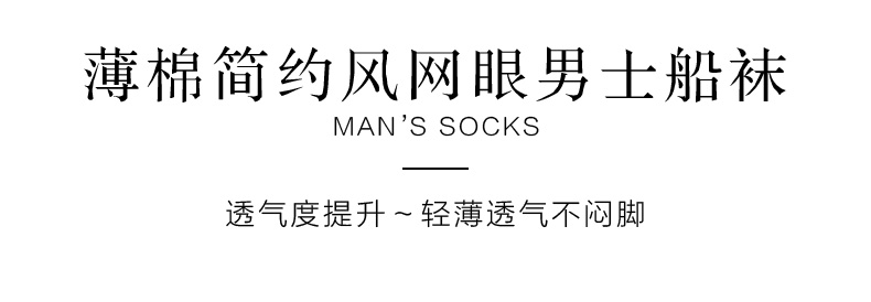 足装秀24新品夏天男士短袜棉质薄棉百搭轻薄透气网眼船袜男袜子