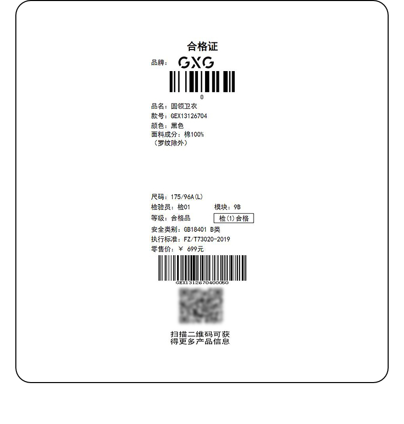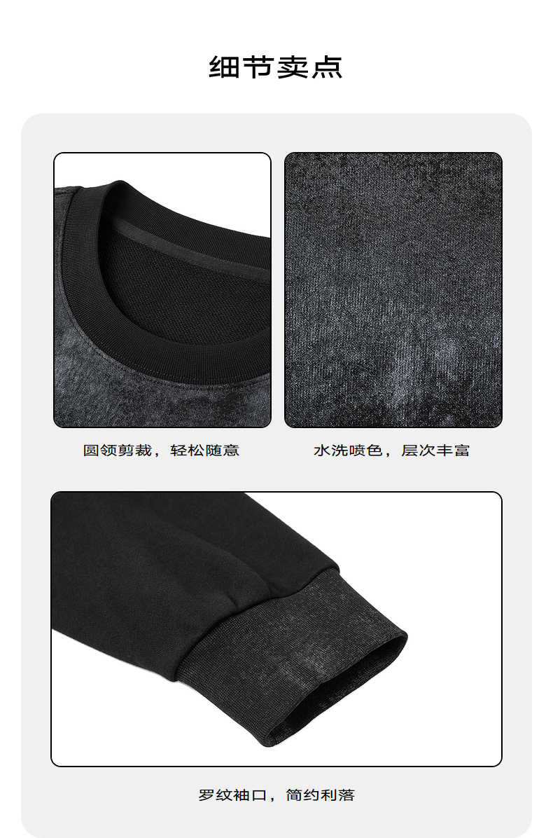 GXG男装黑色水洗圆领卫衣 冬季热卖时尚卫衣GEX13126704