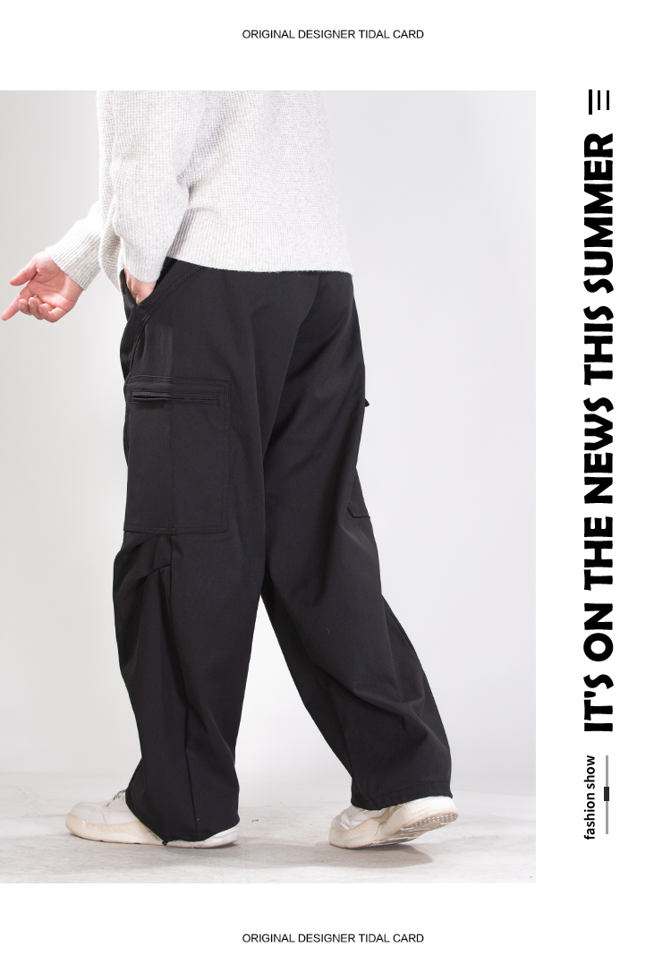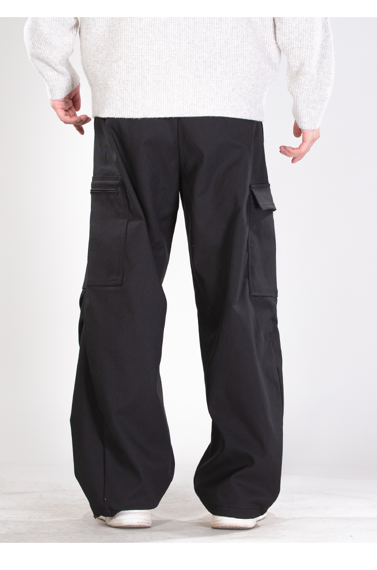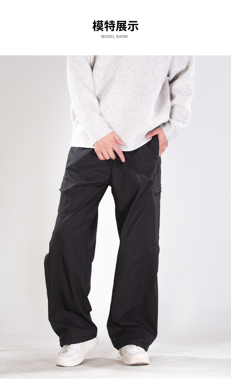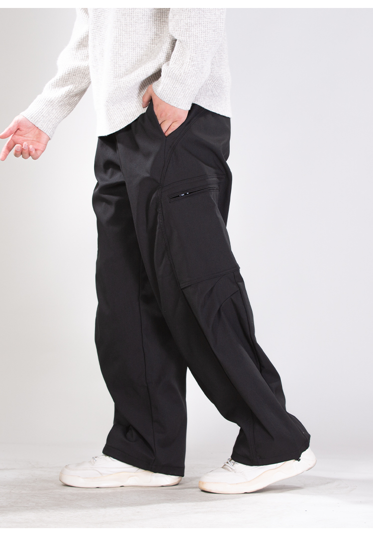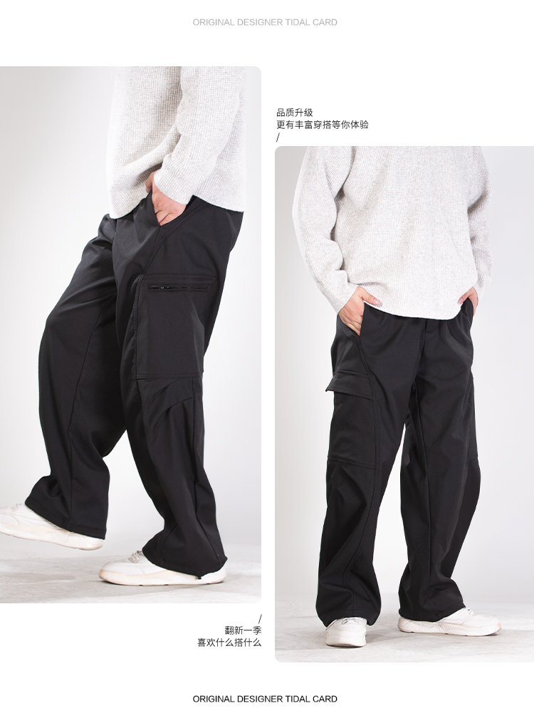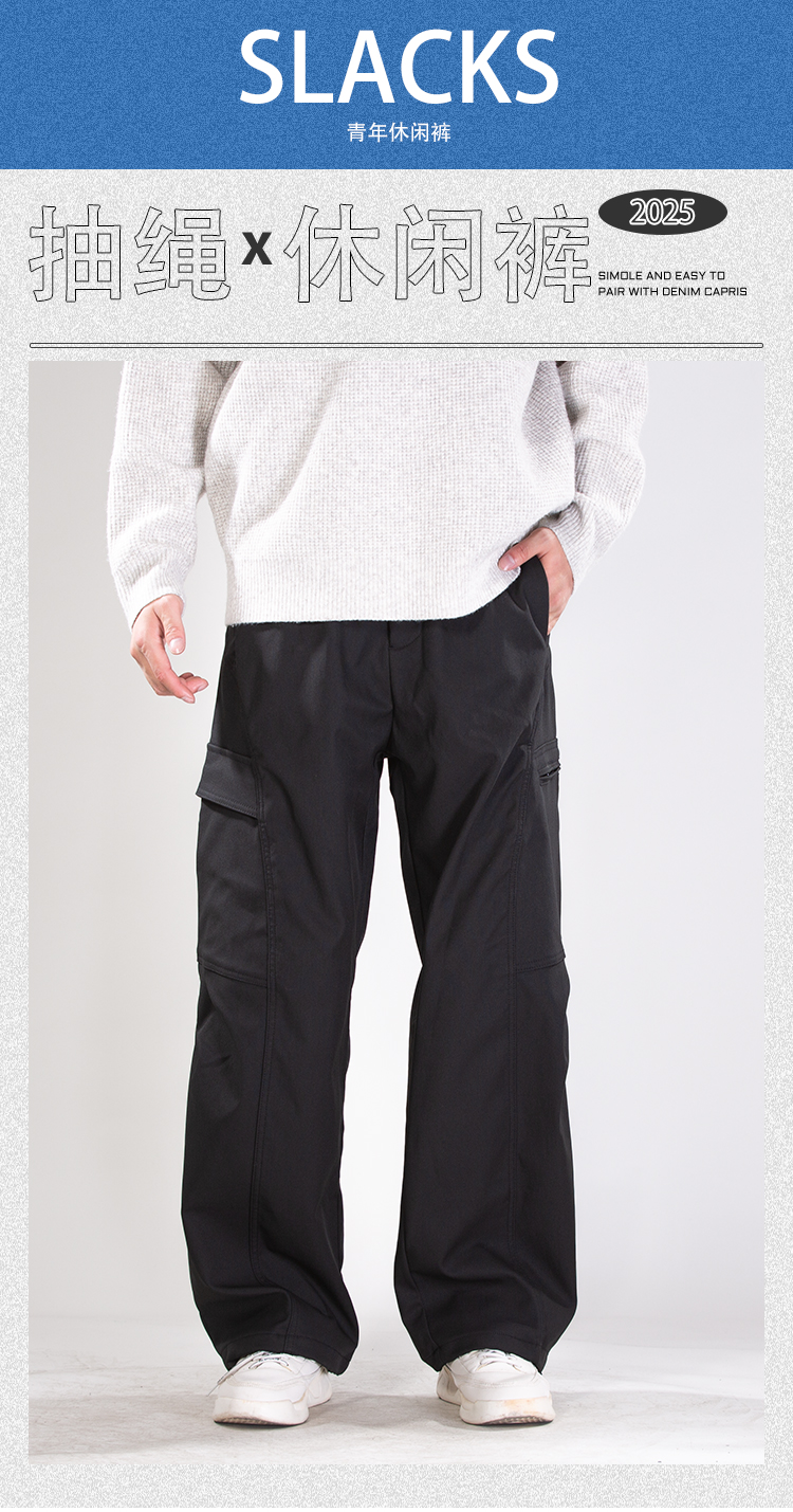 DRONKOO 2025 半松紧腰左拉链右袋盖复合中厚工装长裤