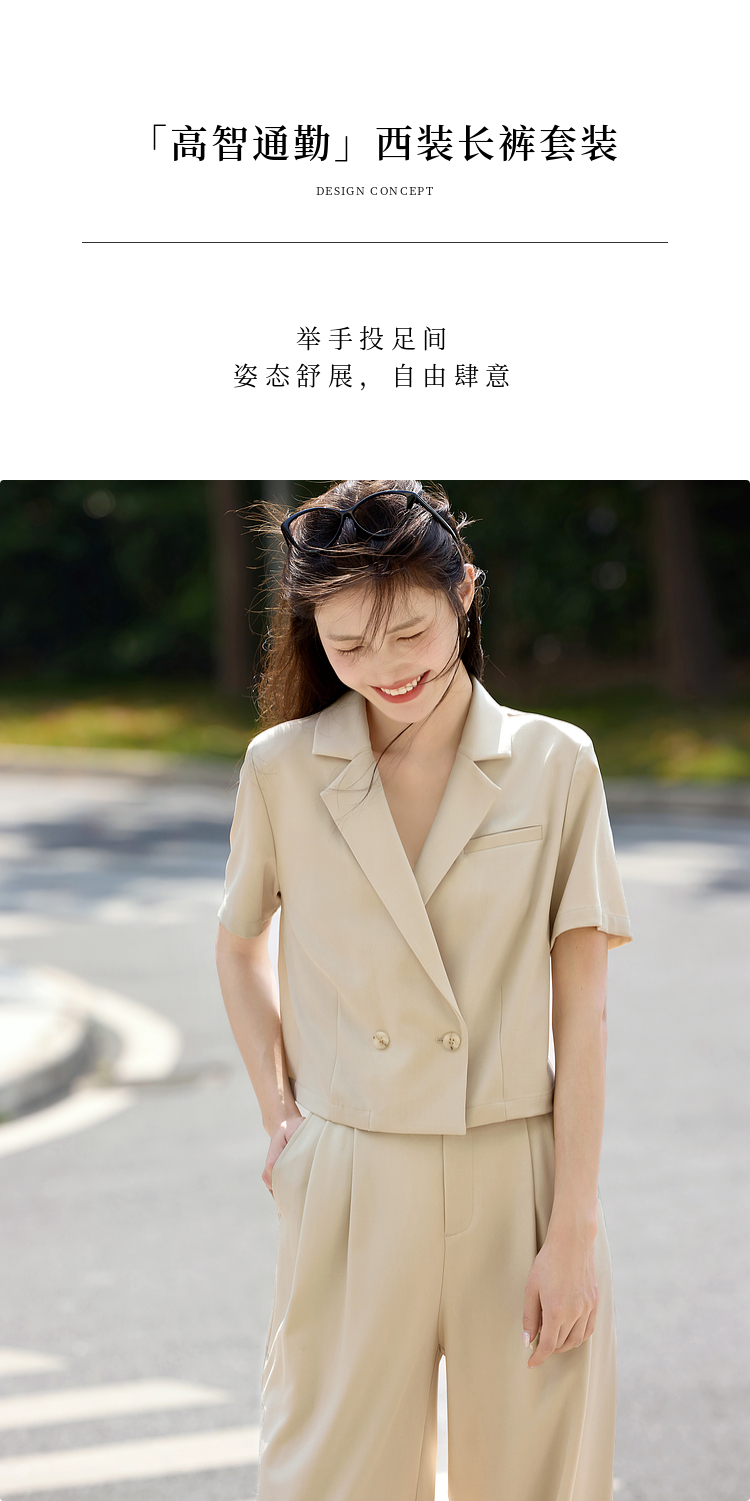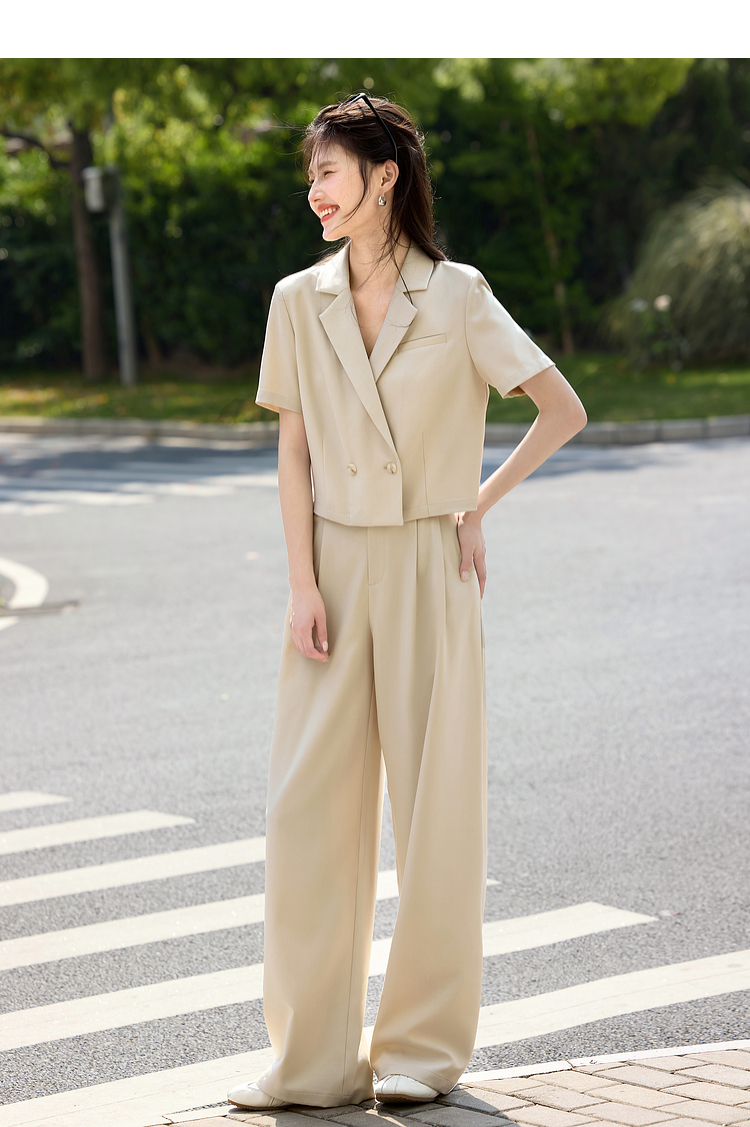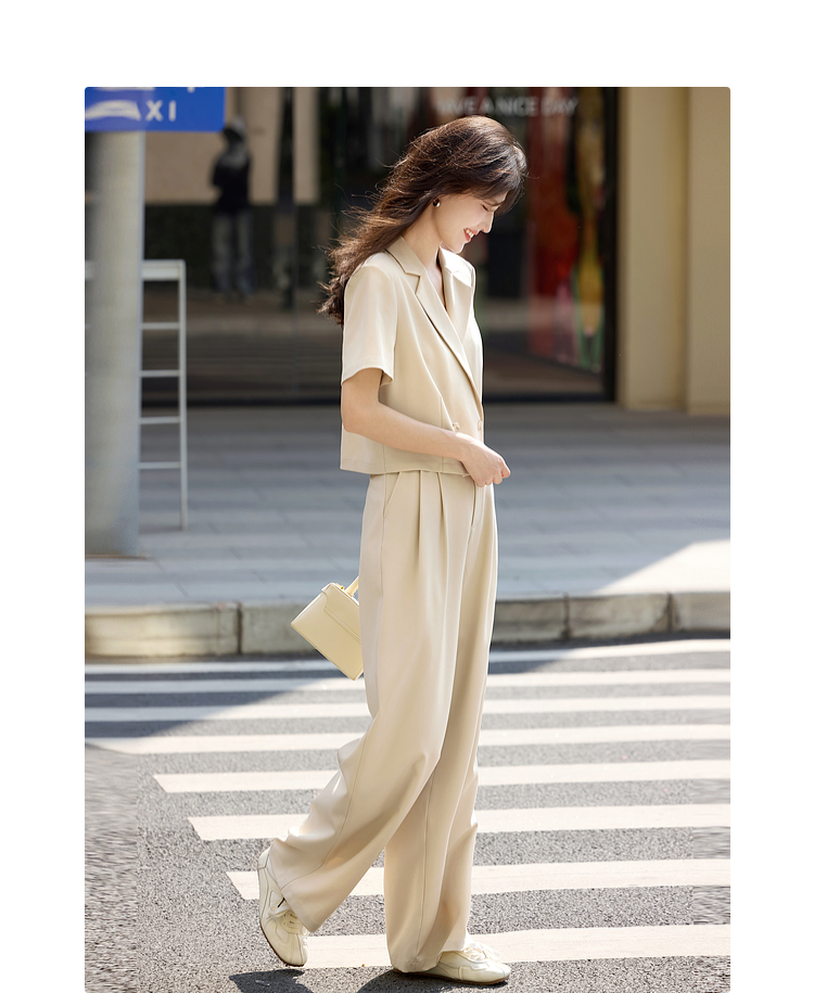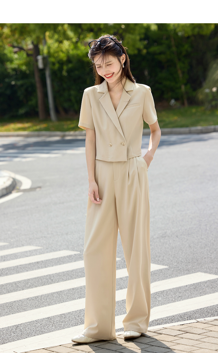 【专属特价】熙世界夏季西装套装女薄款休闲通勤职场短袖西服外套阔腿裤两件套