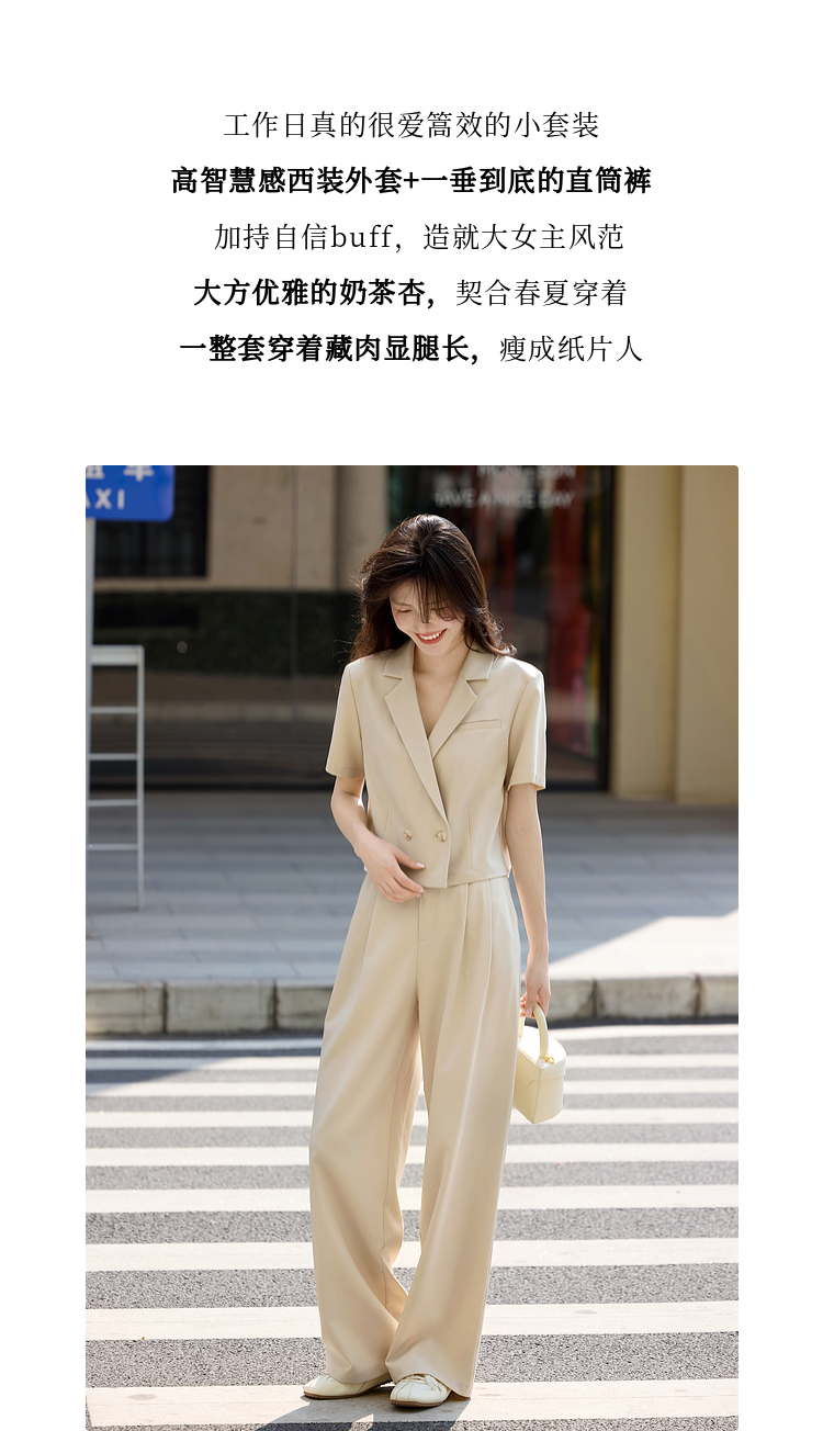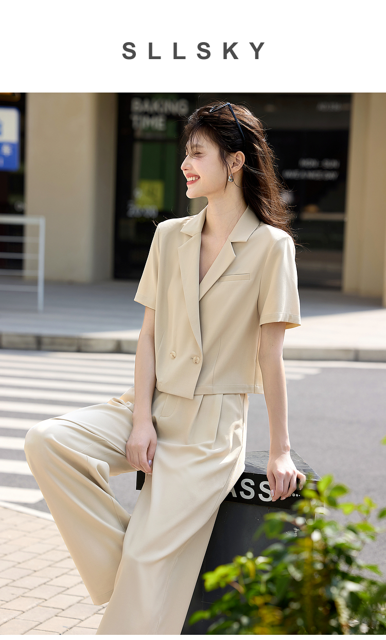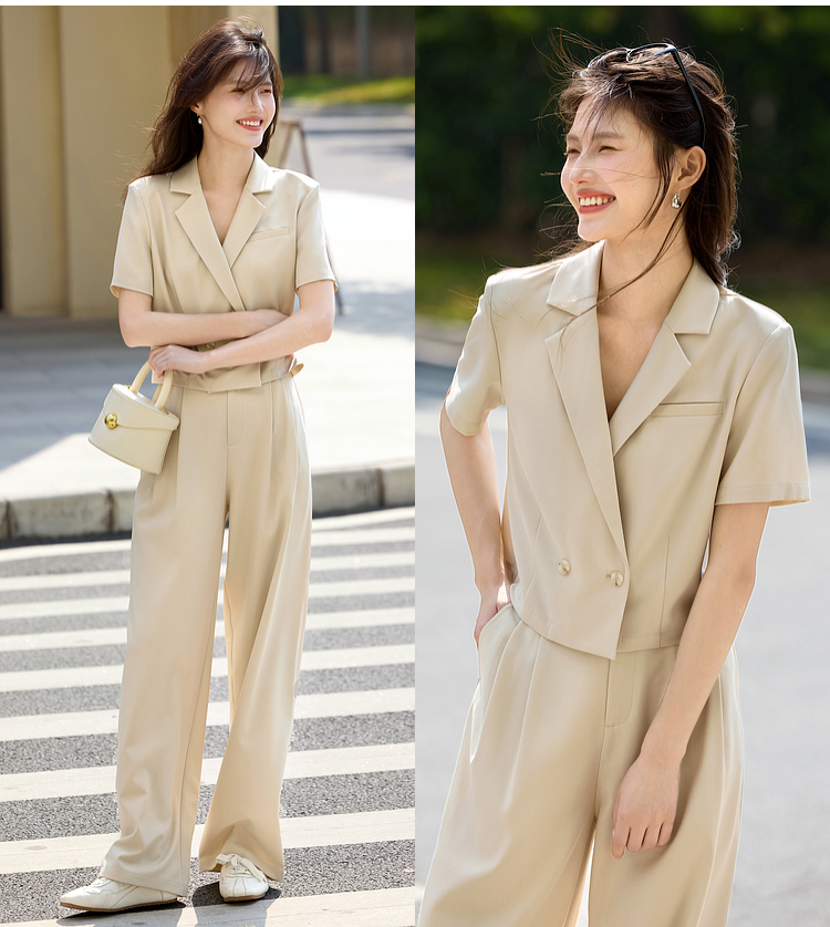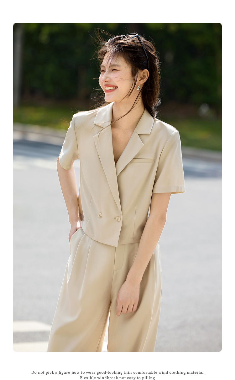 【专属特价】熙世界夏季西装套装女薄款休闲通勤职场短袖西服外套阔腿裤两件套