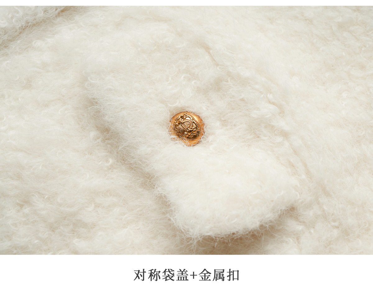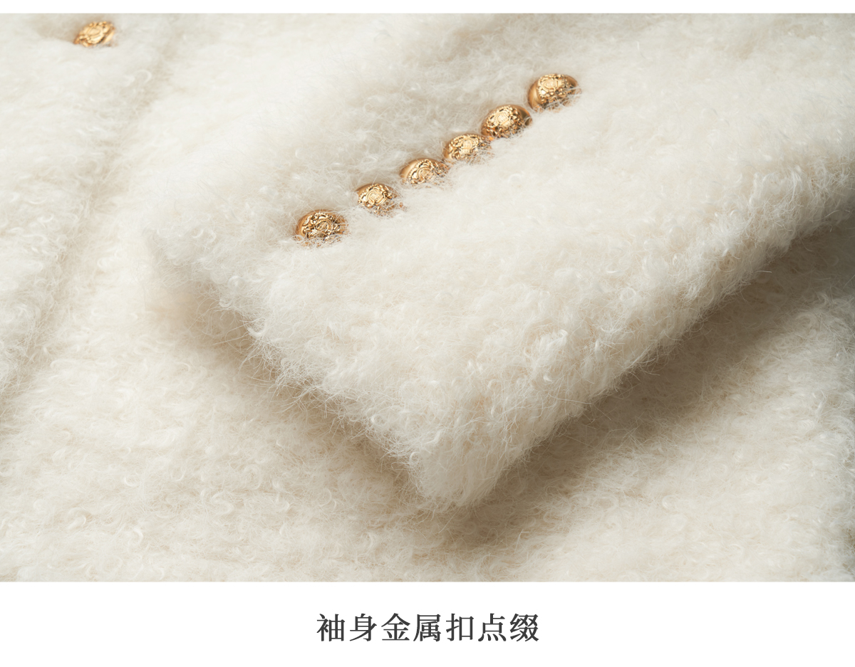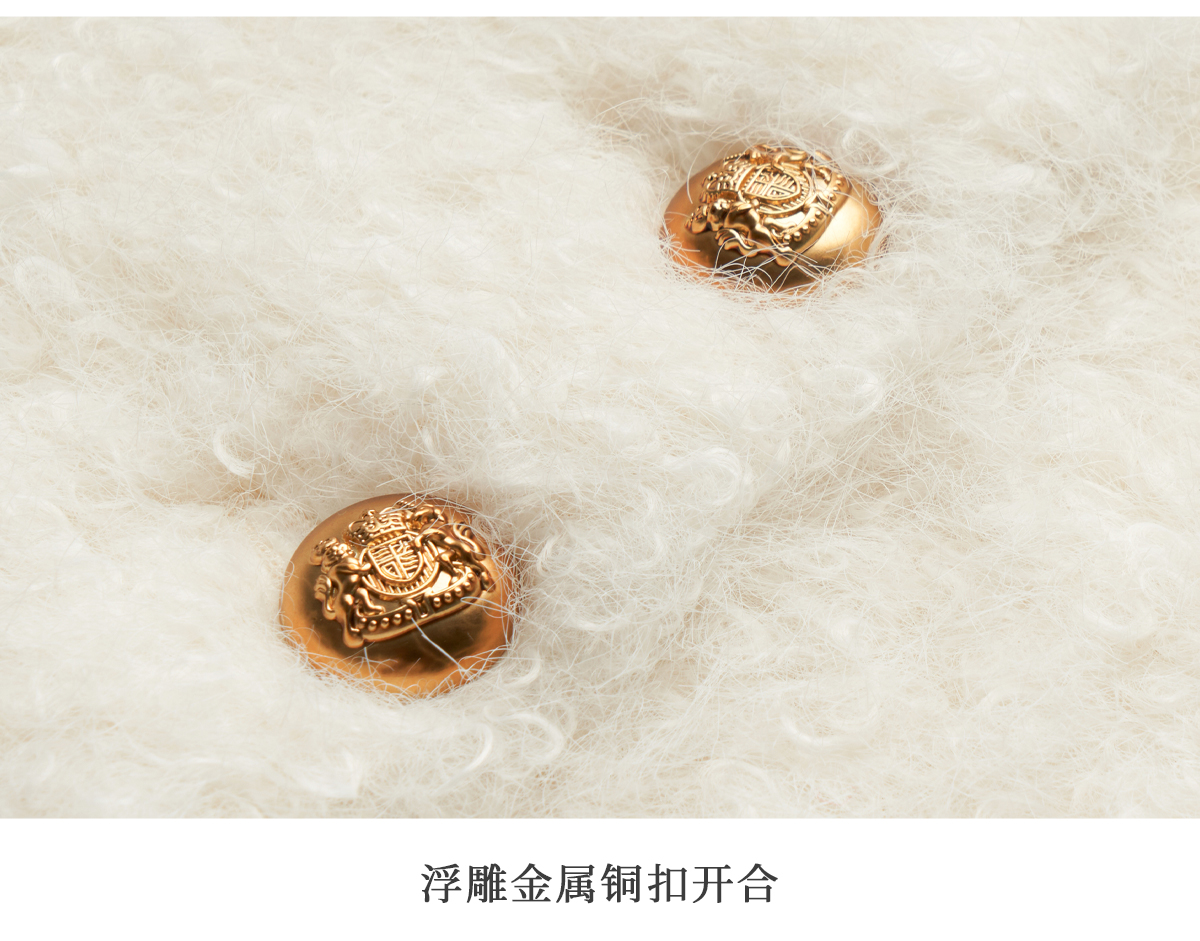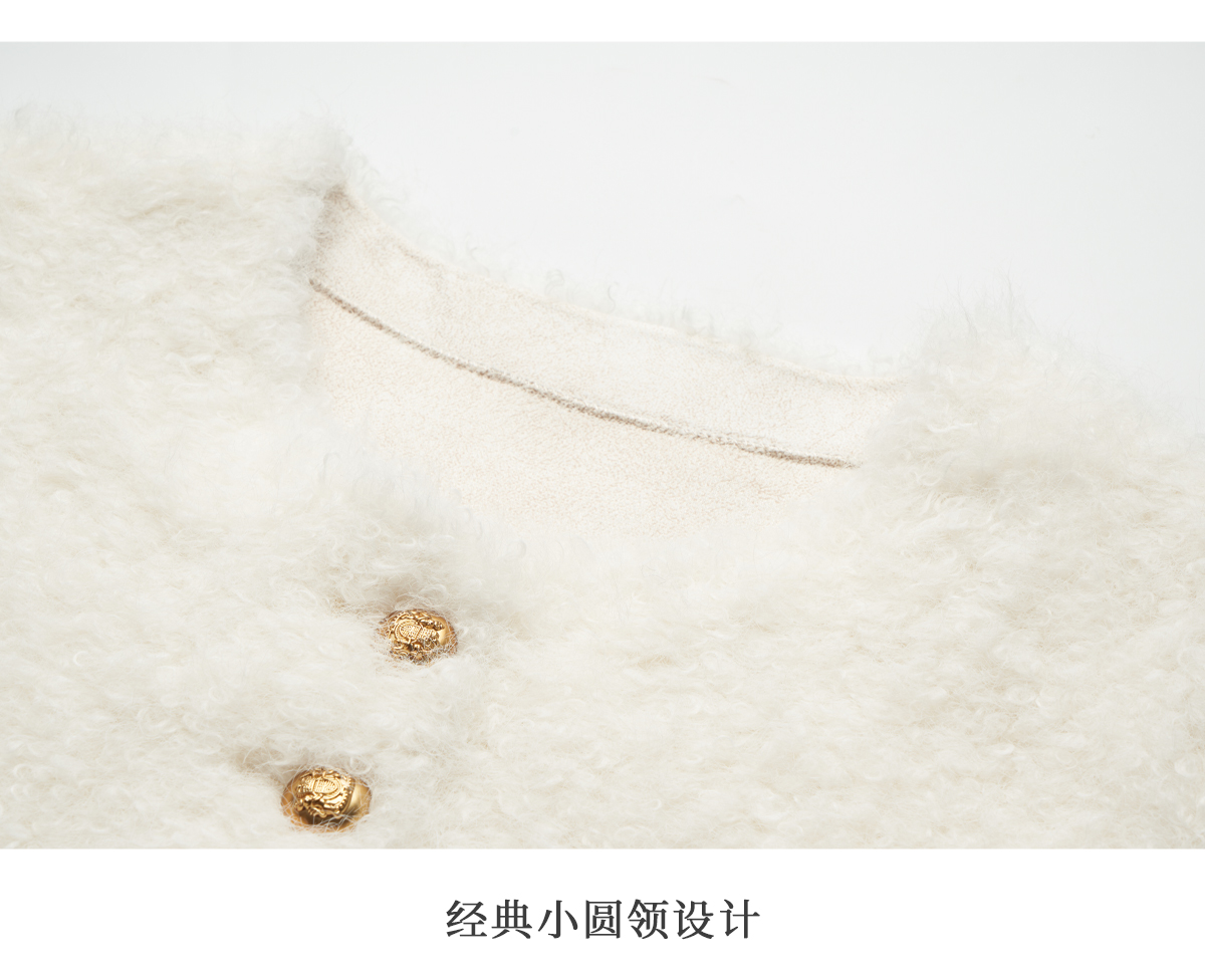 OLrain欧芮儿法式皮草外套女冬季2024年新款时尚圆领皮毛一体上衣