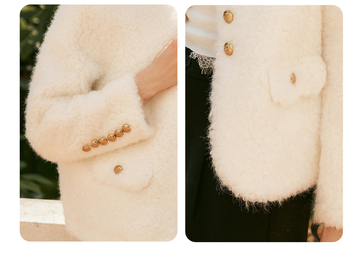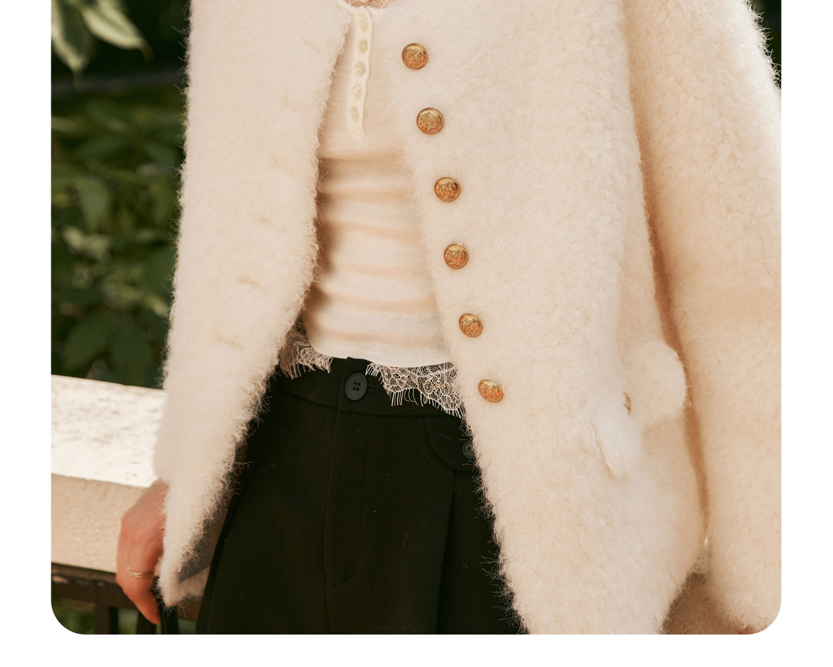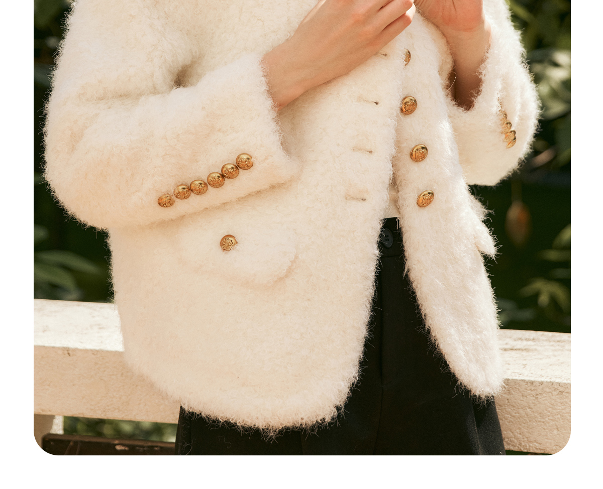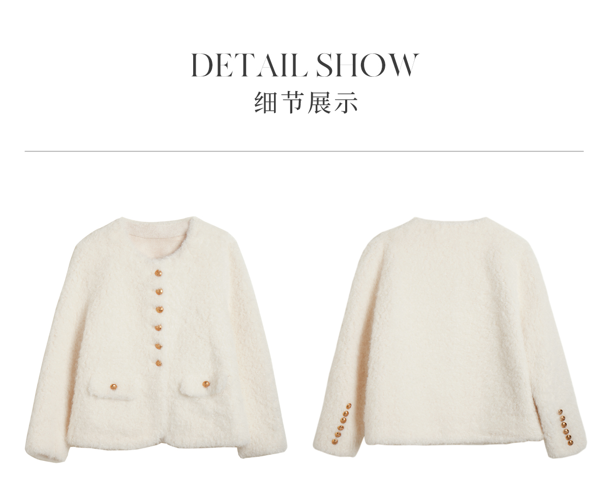 OLrain欧芮儿法式皮草外套女冬季2024年新款时尚圆领皮毛一体上衣