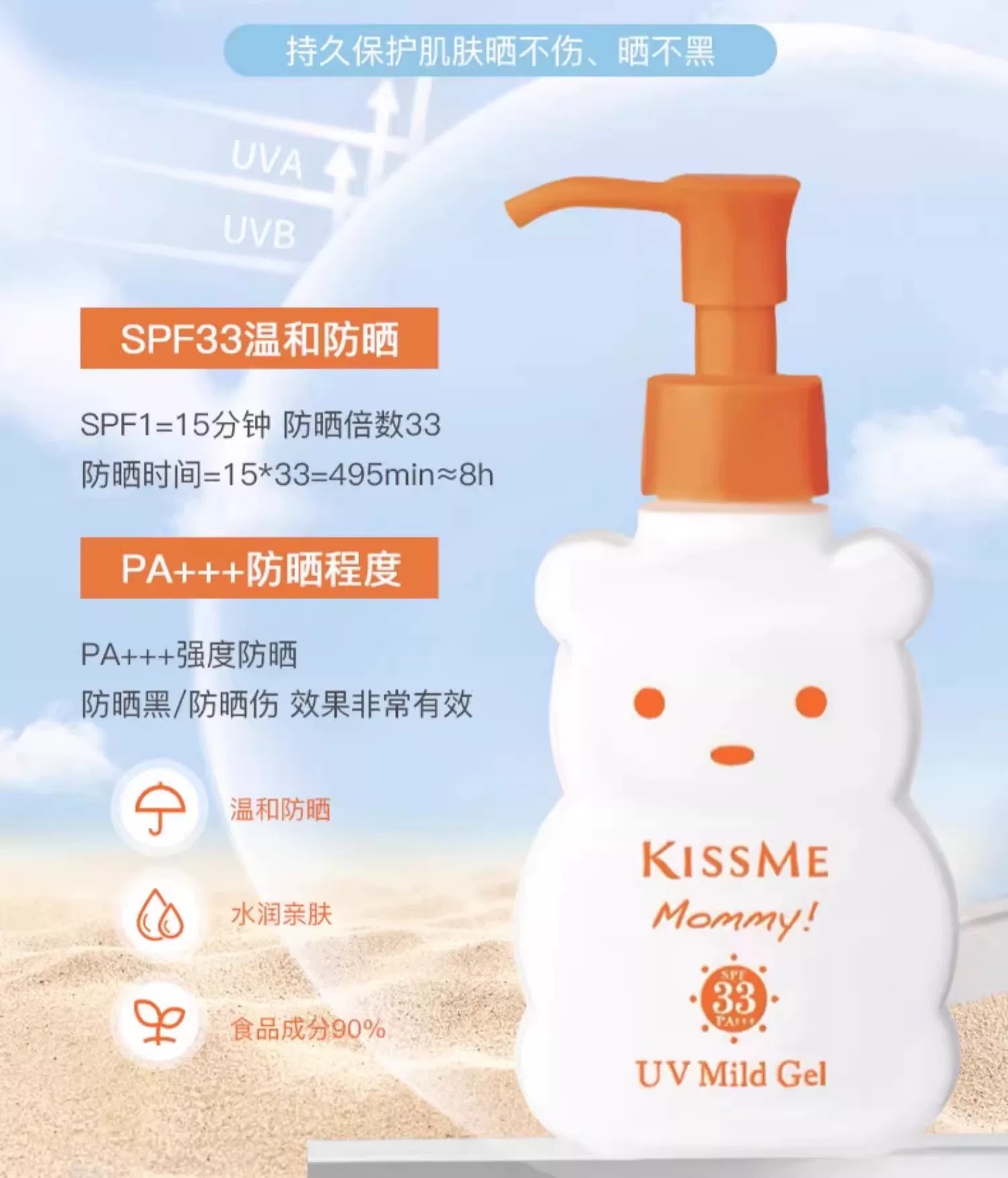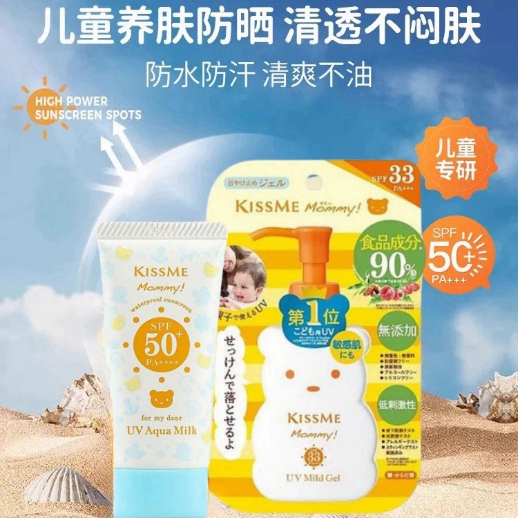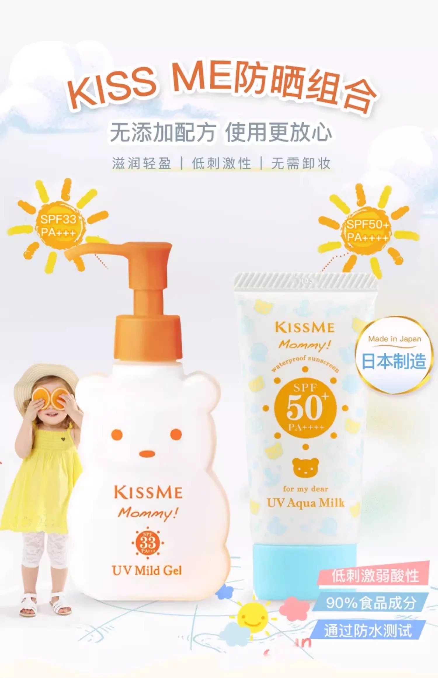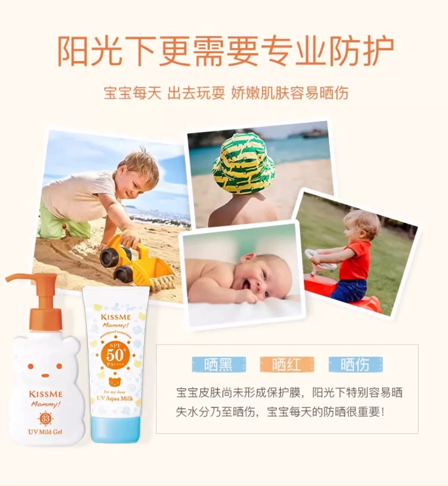 日本KISS ME奇士美kissme小熊防晒乳液50g SPF50+ pa++++/100g SPF33 pa+++宝宝户外儿童敏感肌可用清爽质地