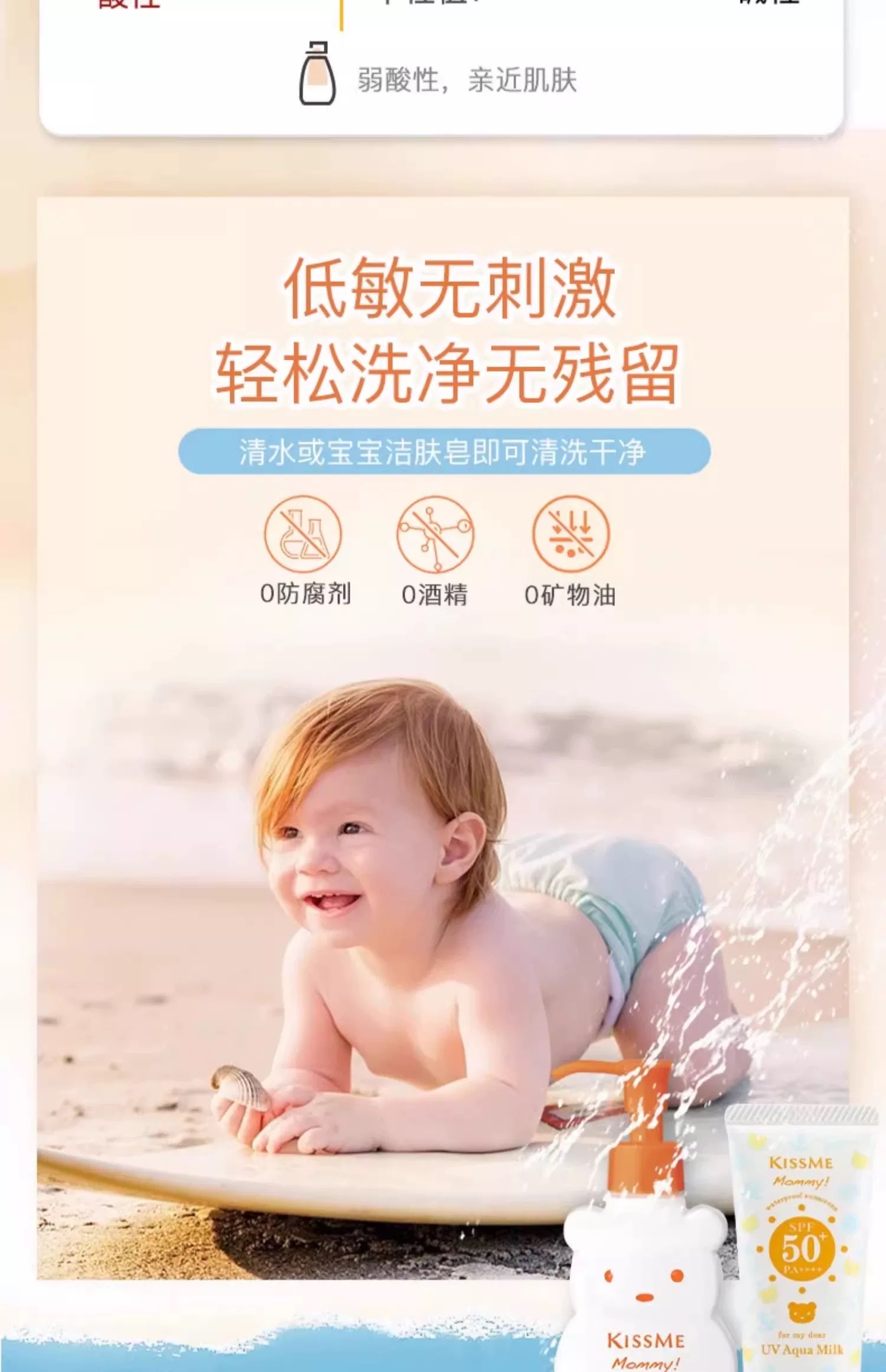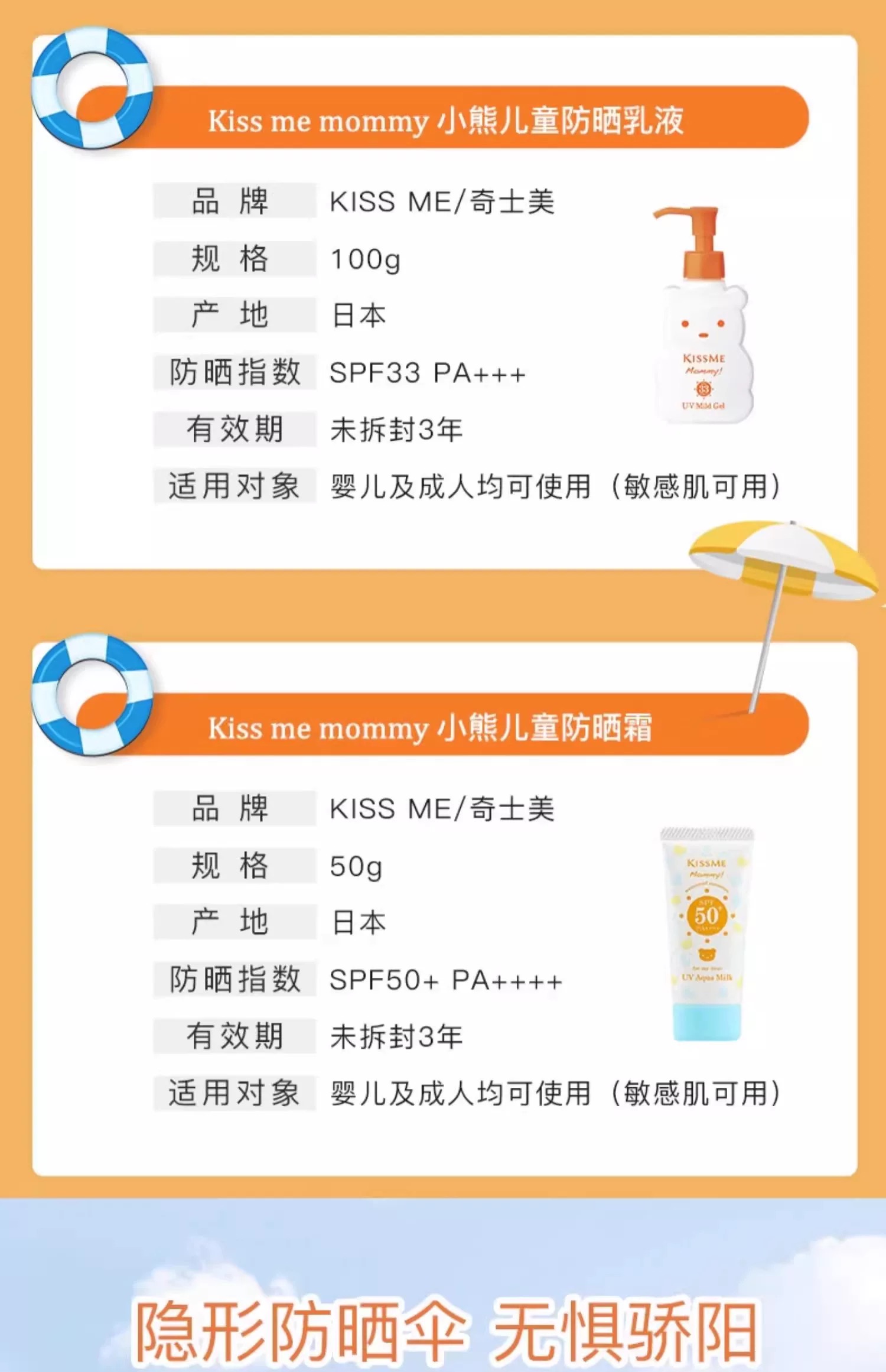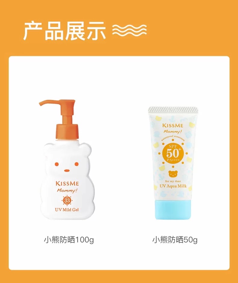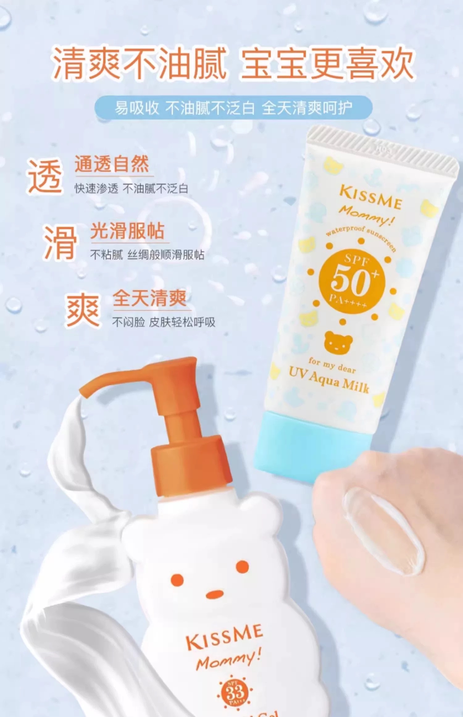 日本KISS ME奇士美kissme小熊防晒乳液50g SPF50+ pa++++/100g SPF33 pa+++宝宝户外儿童敏感肌可用清爽质地