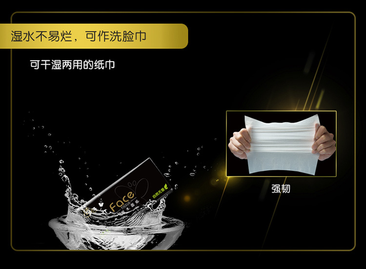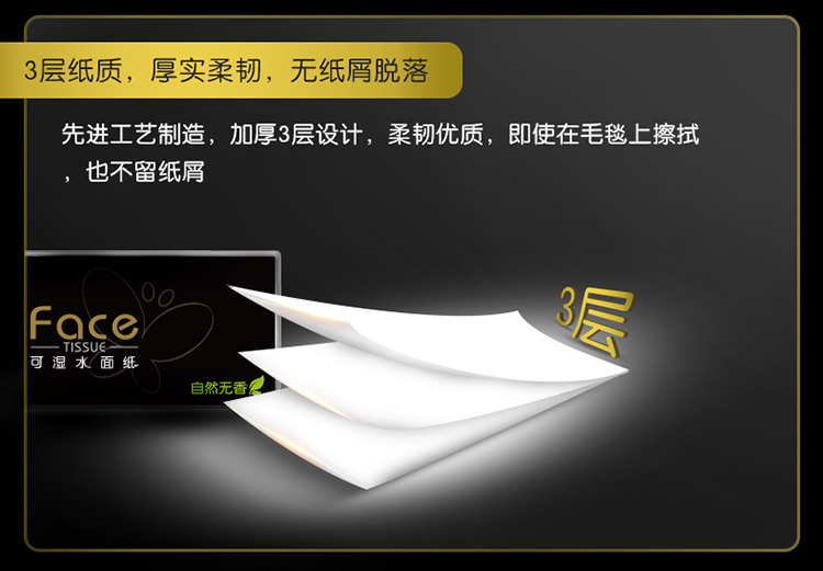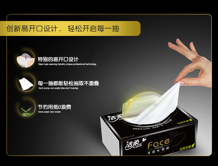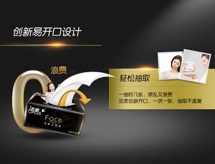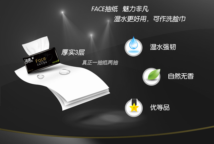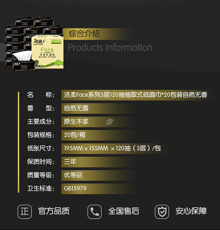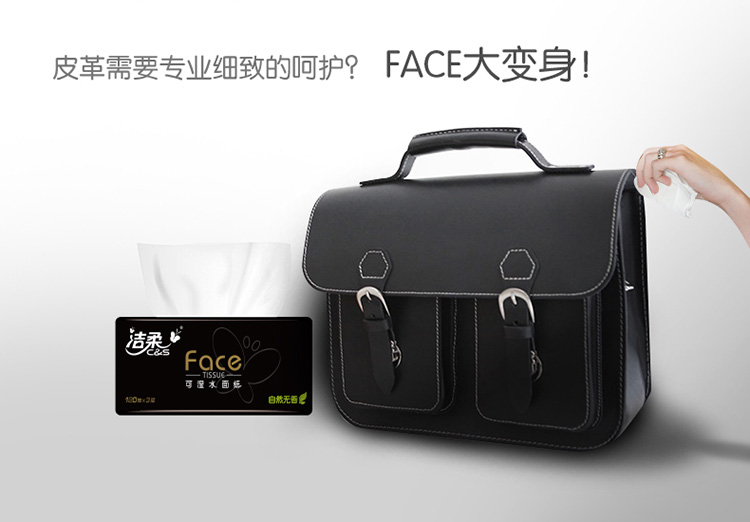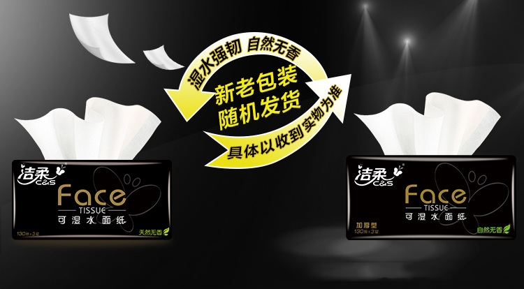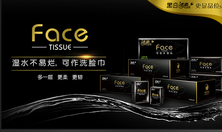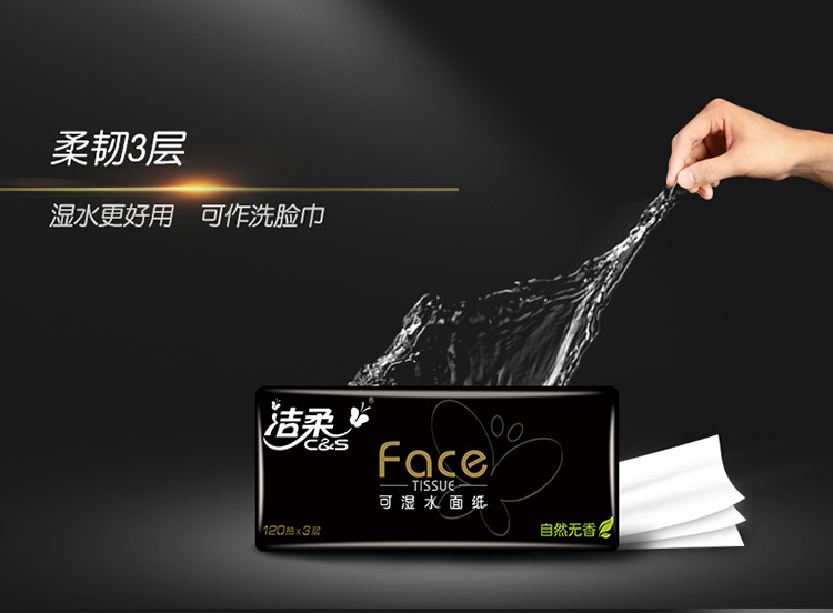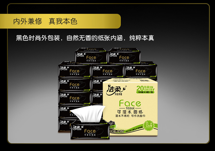 洁柔抽纸(C&S)纸巾黑Face 可湿水3层120抽面巾纸*20包 无香(L号纸巾 面子系列加厚型软抽)干湿两用 整箱销售