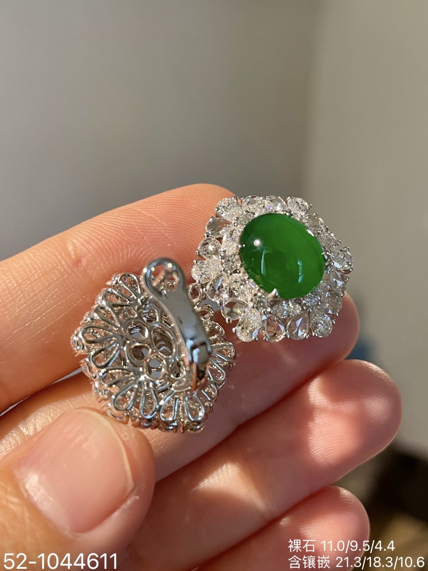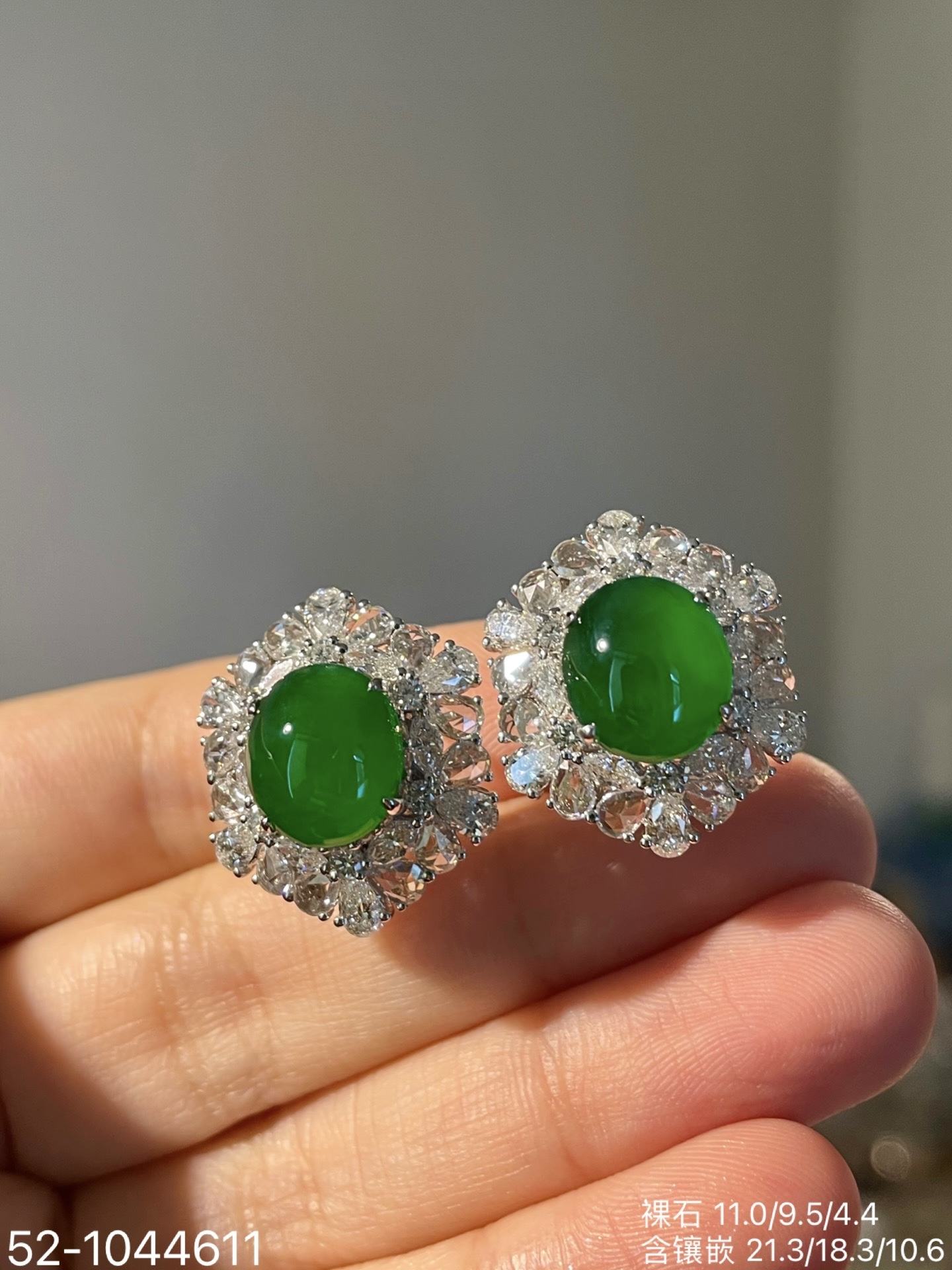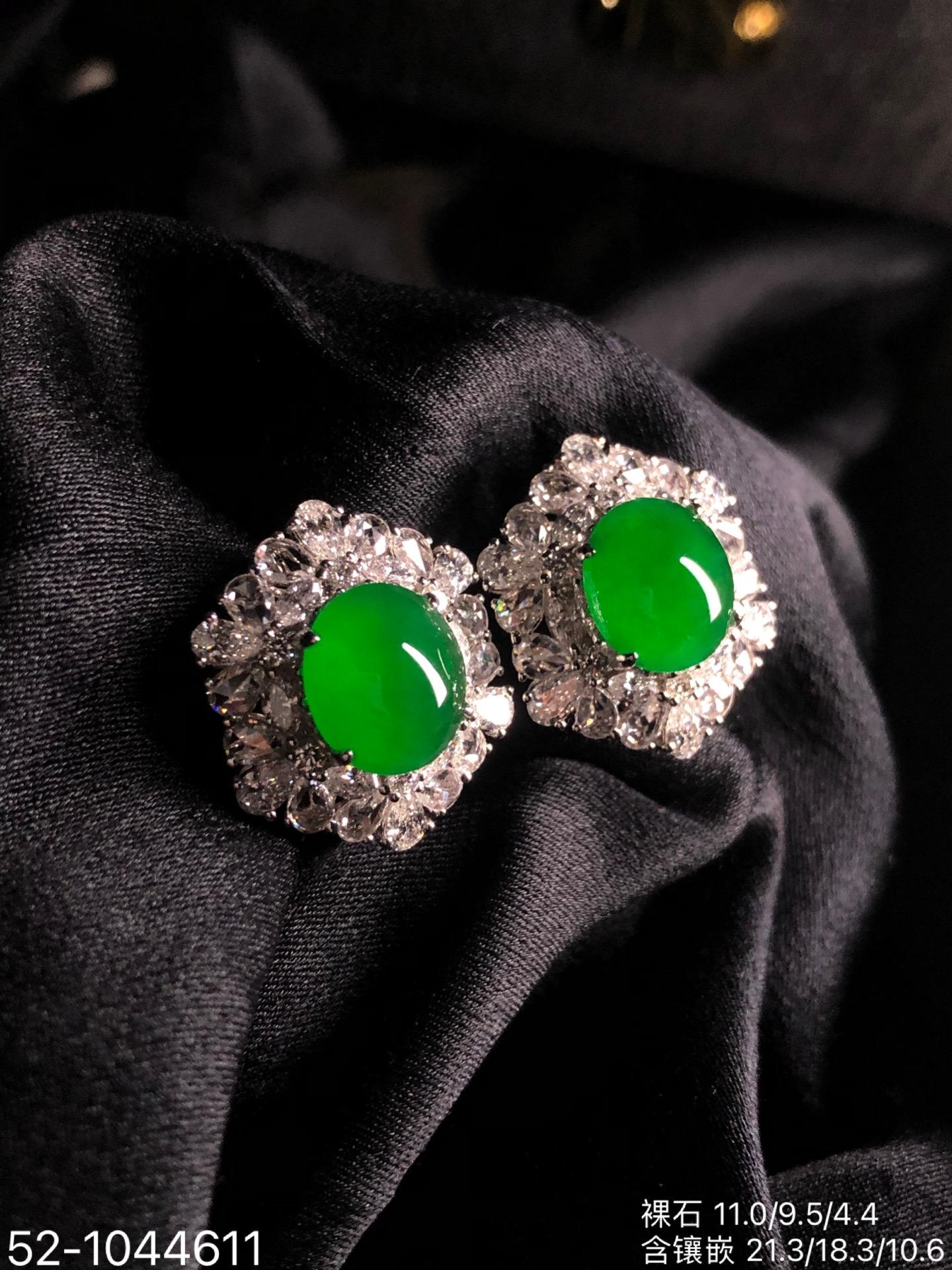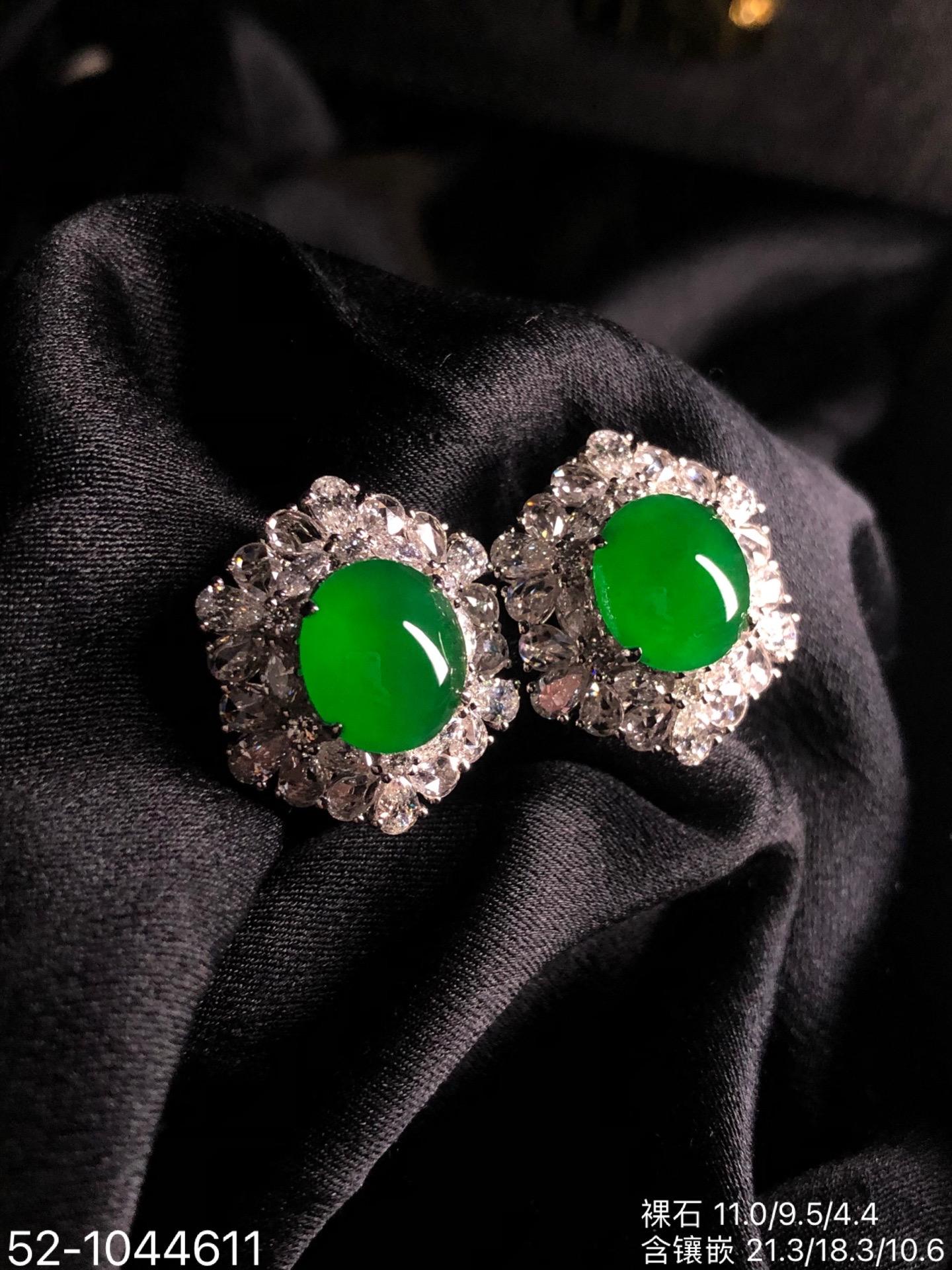 老坑帝王绿蛋面耳钉,52-1044611。具体价格微信咨询