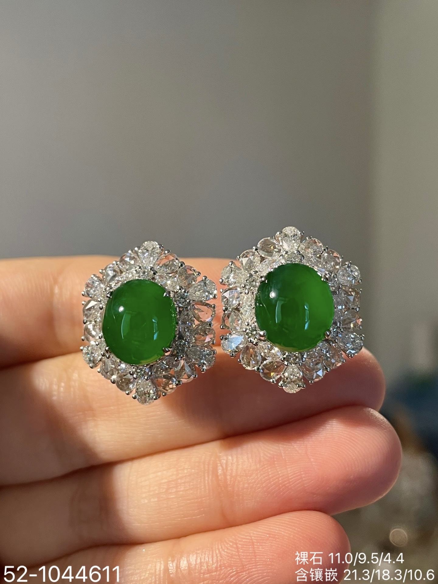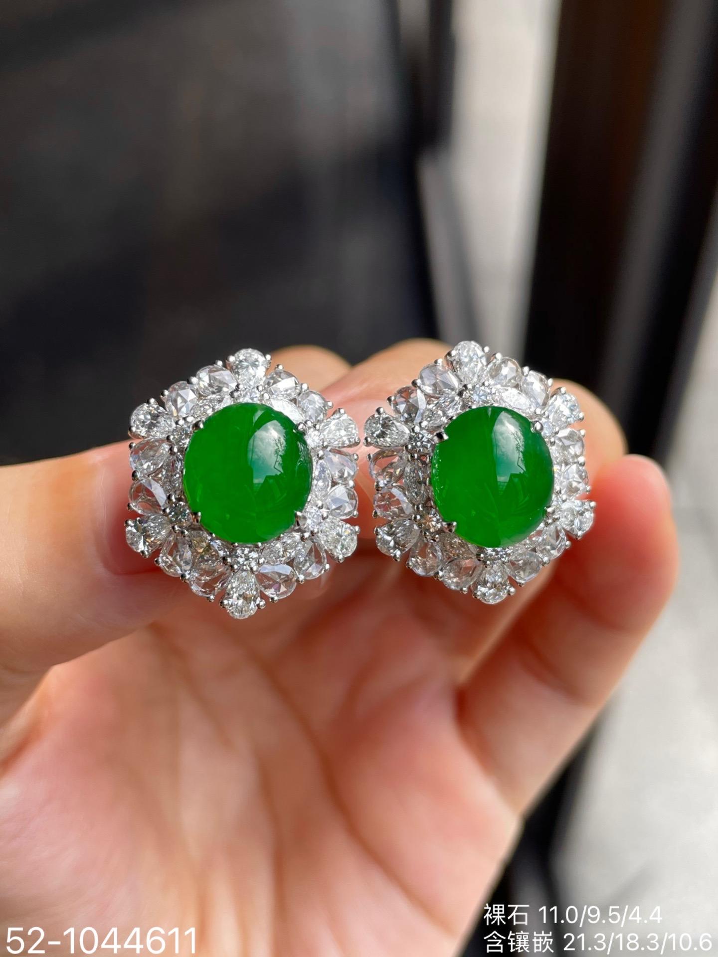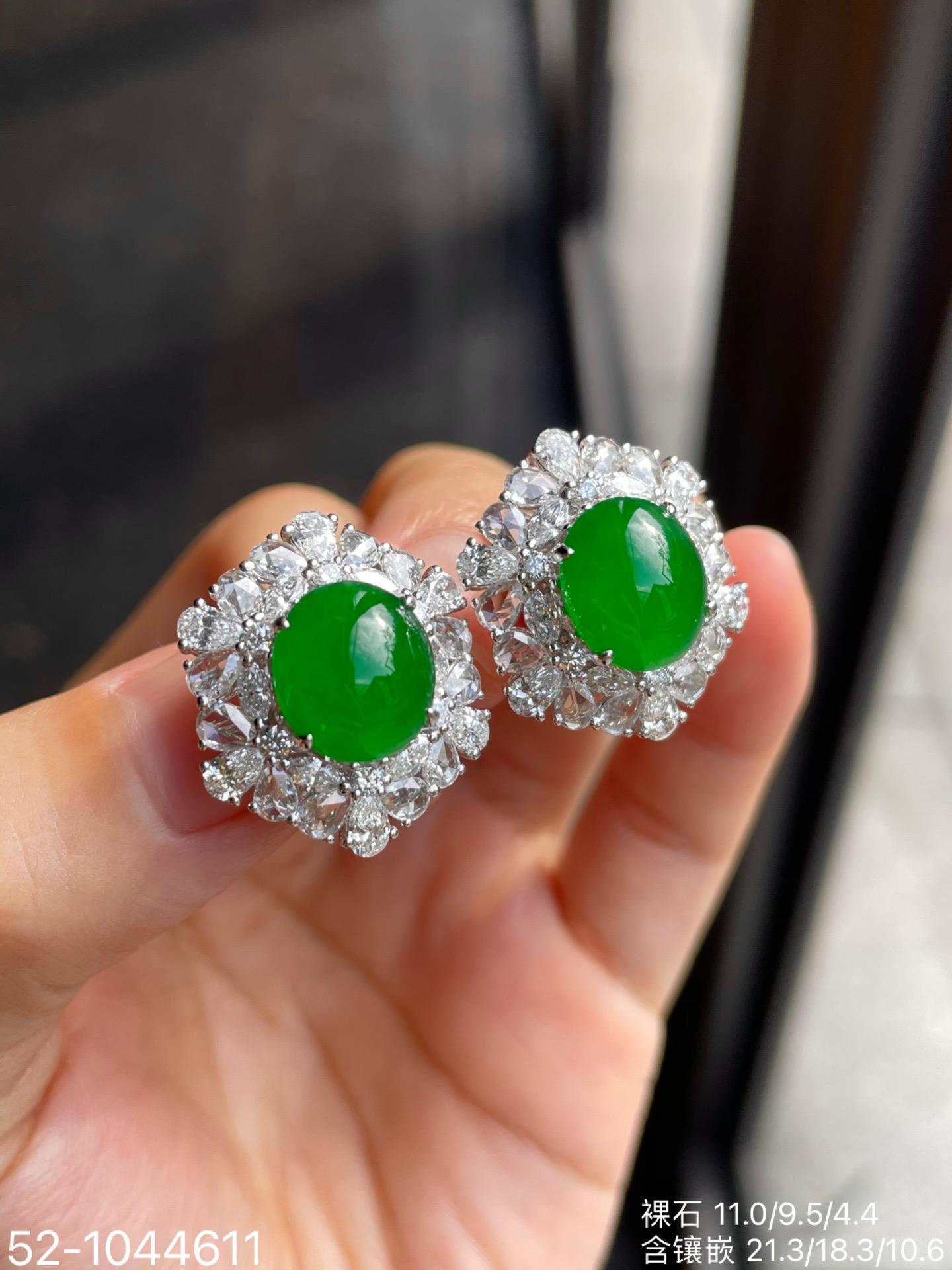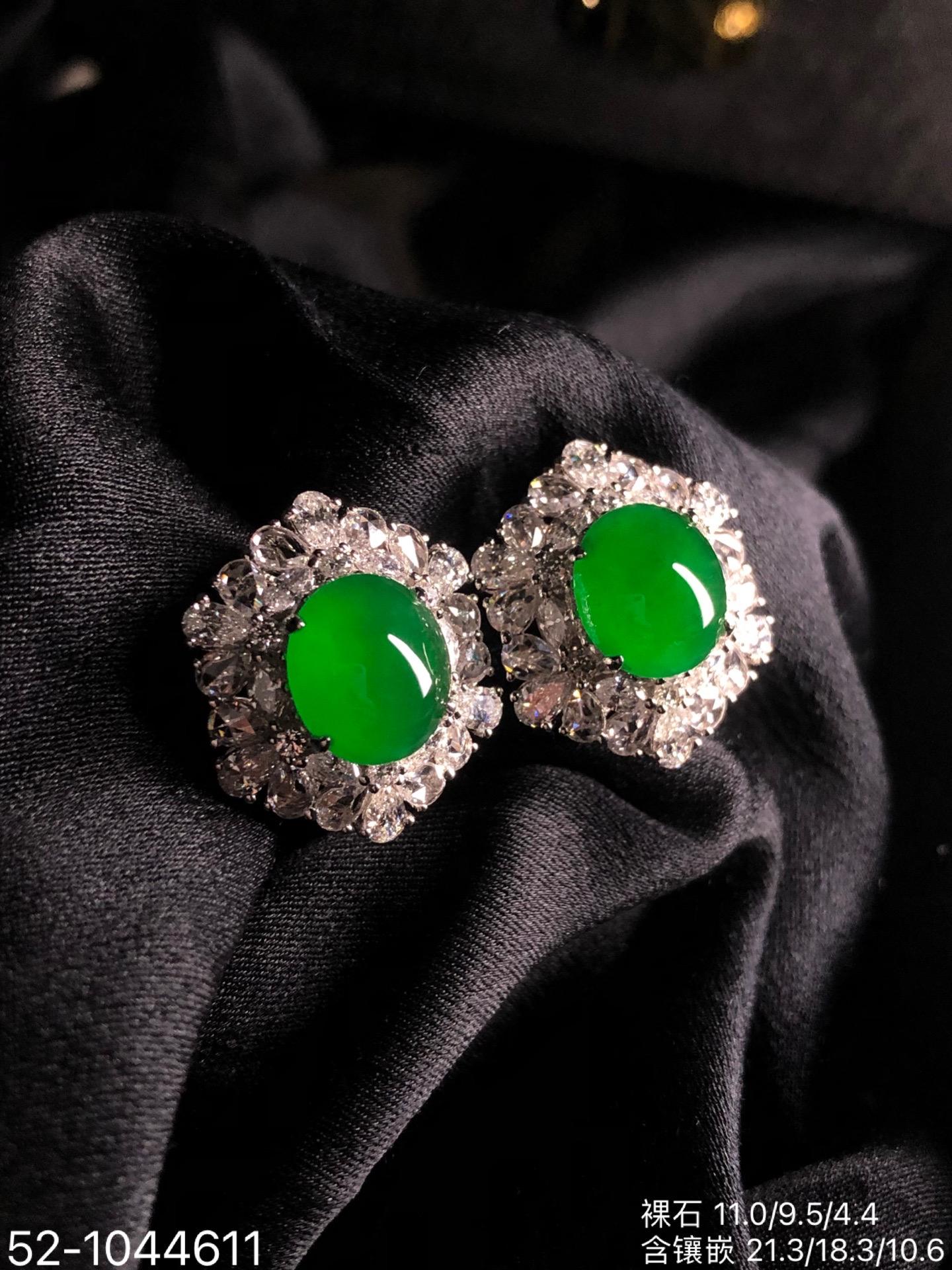 老坑帝王绿蛋面耳钉,52-1044611。具体价格微信咨询