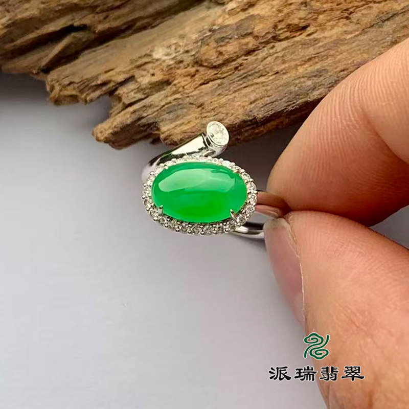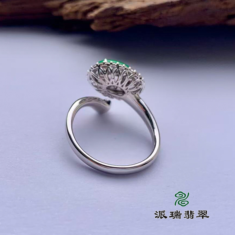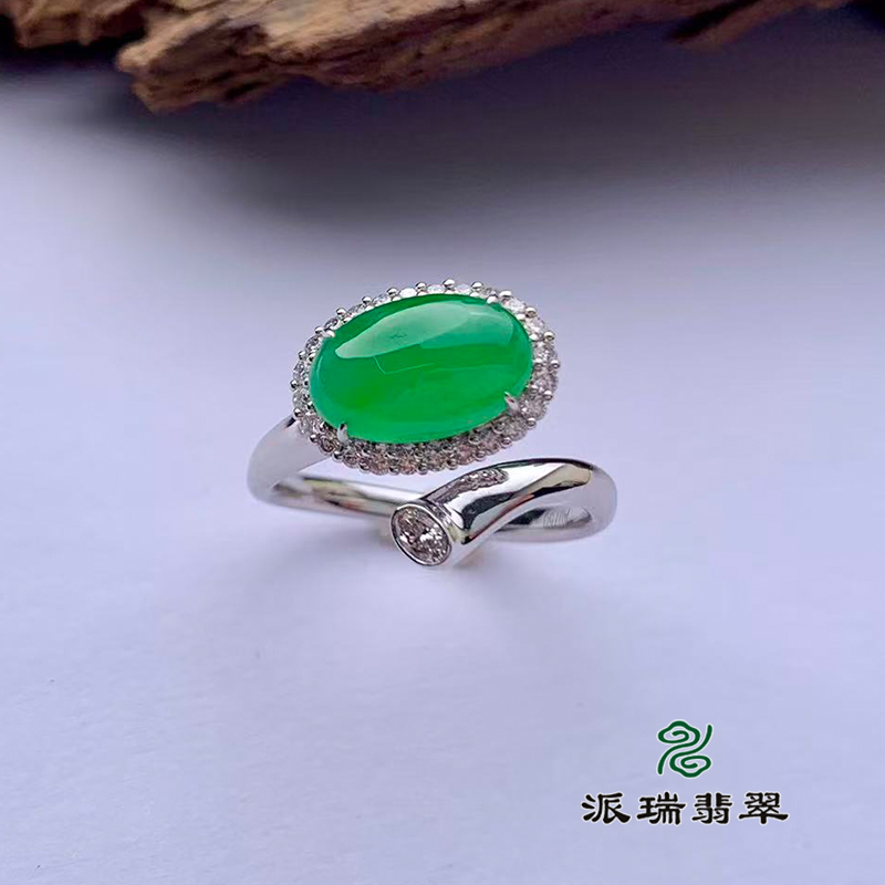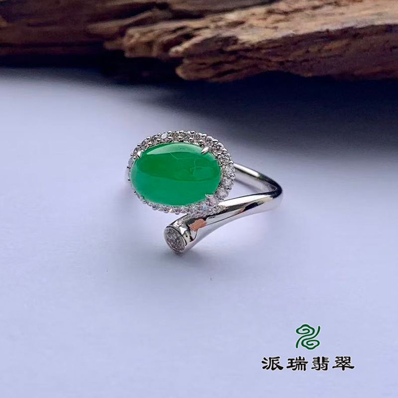 派瑞翡翠 18k金翡翠戒指 冰种 绿色