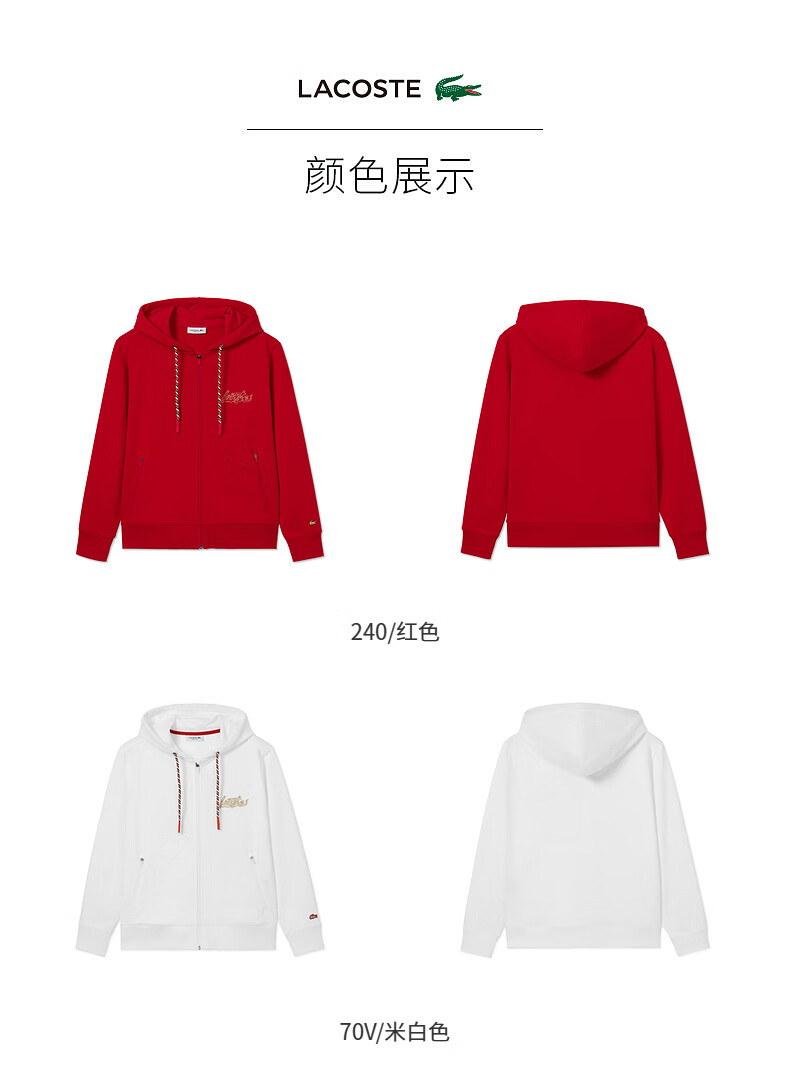 Lacoste福蛇新春系列女装新款时尚拉链连帽卫衣SF5442-98
