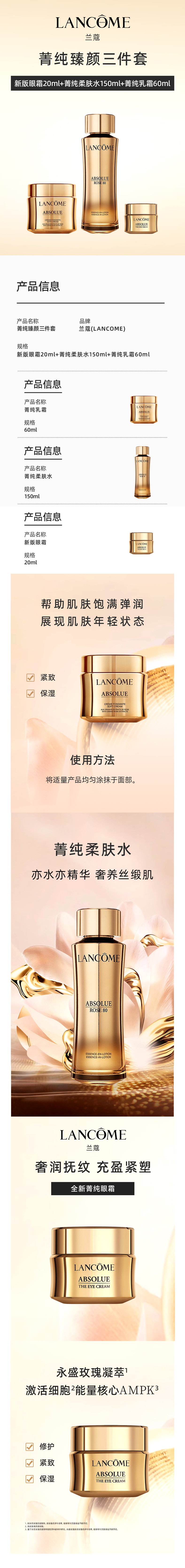 【口碑推荐】LANCÔME新版兰蔻菁纯三件套 柔肤水150ml+清爽面霜60ml+眼霜20ml自带礼袋『此链接请分开拍单-合并下单不发货』