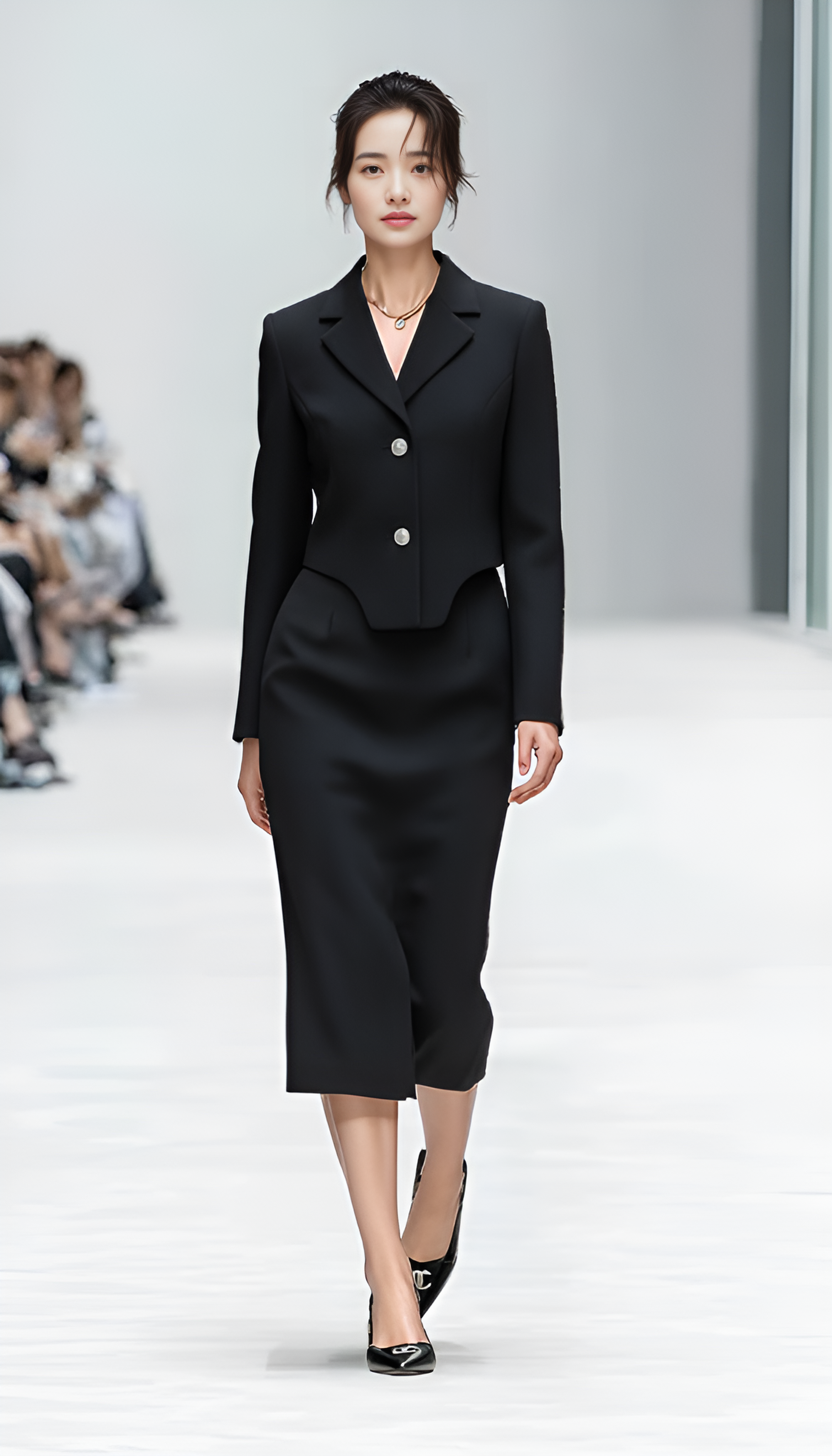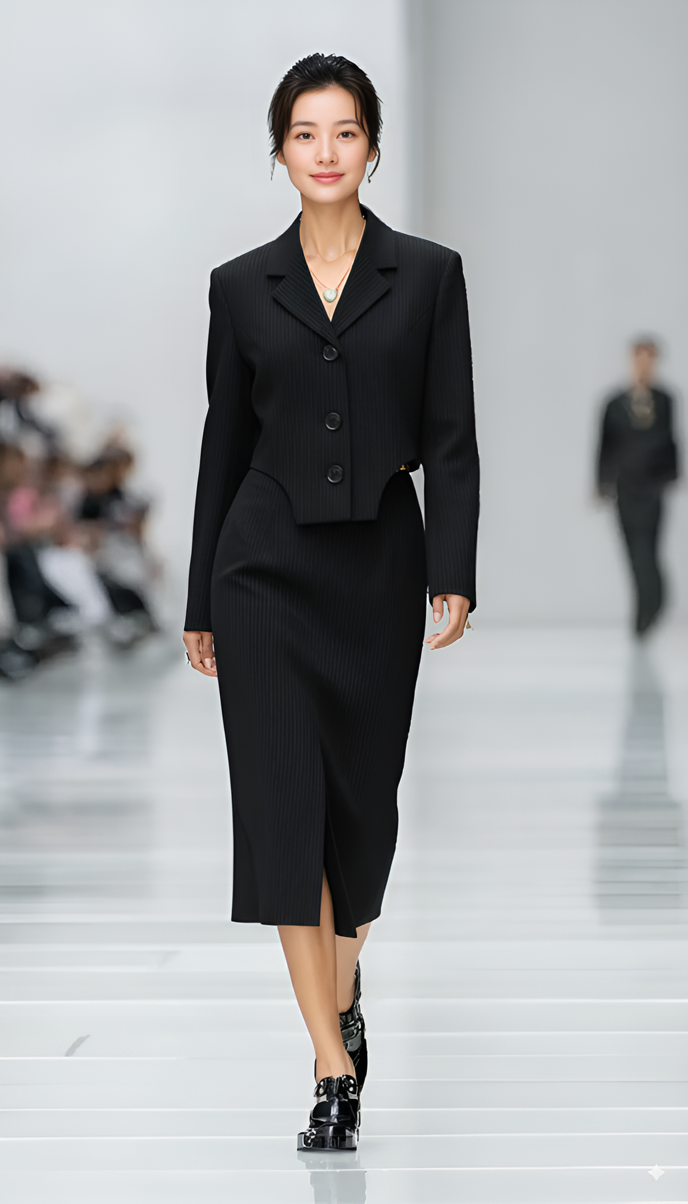 商品:Anica HN 翻领侧弧形百搭短外套(套装上)