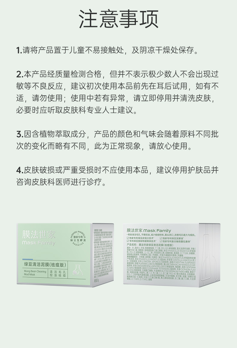 【清洁祛痘】膜法世家绿豆祛痘清洁泥膜55g