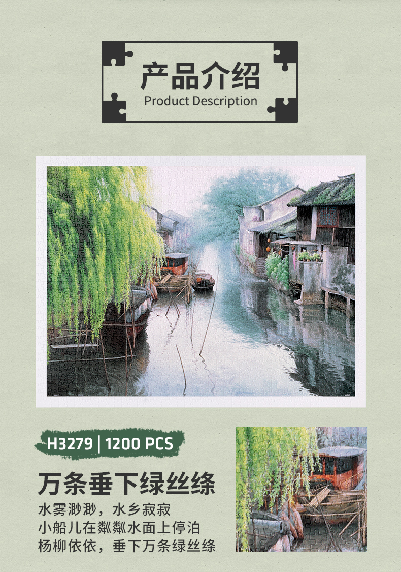 【折扣商品 不退不换】1200片 平面塑料拼图 H3279 黄有维-万条垂下绿丝绦