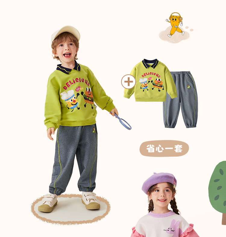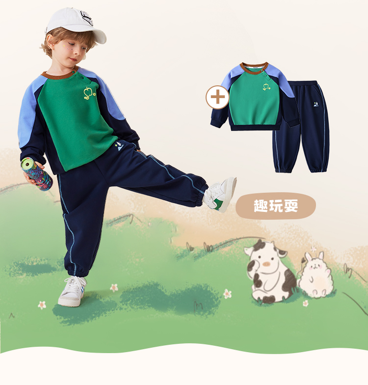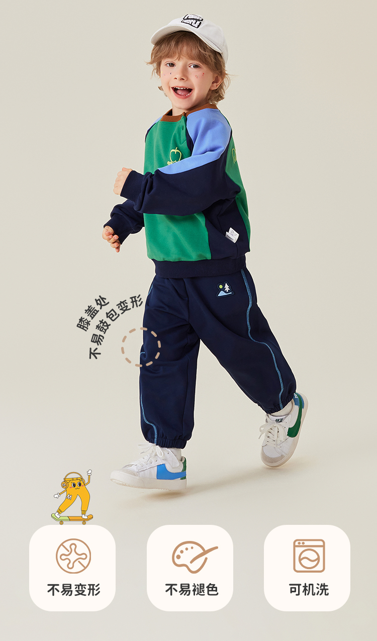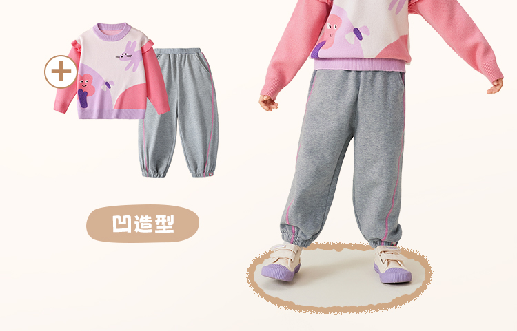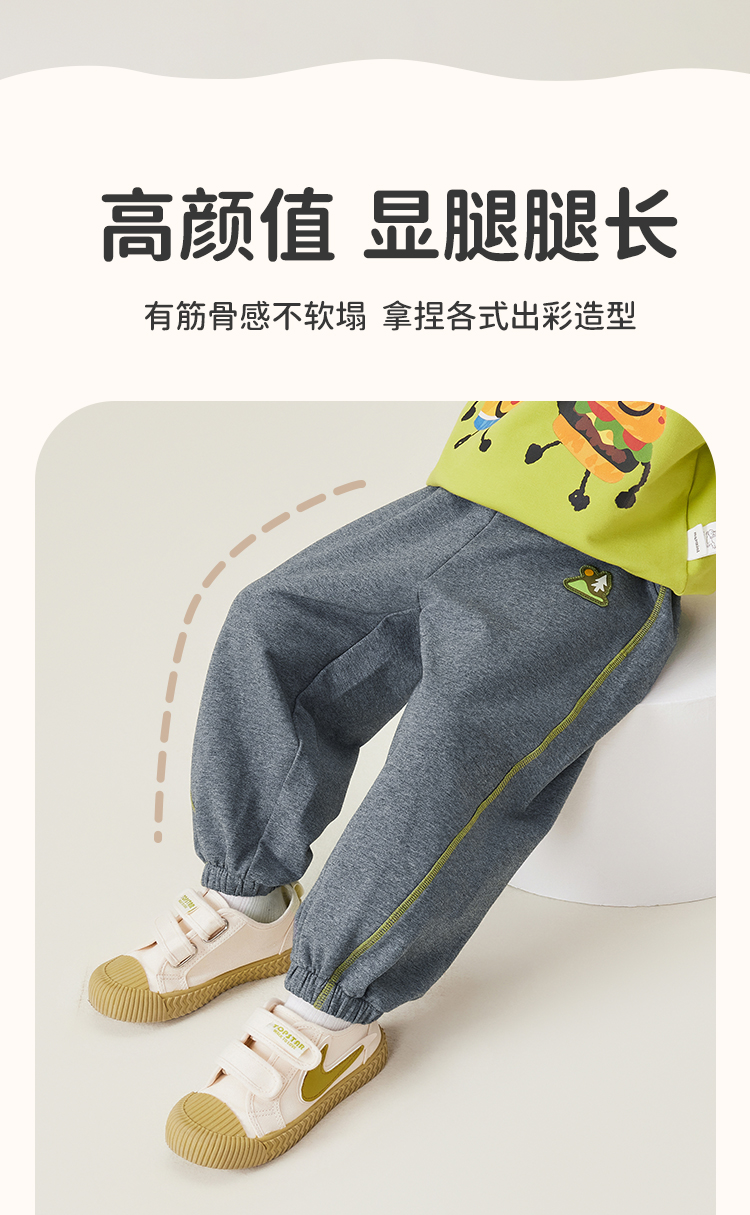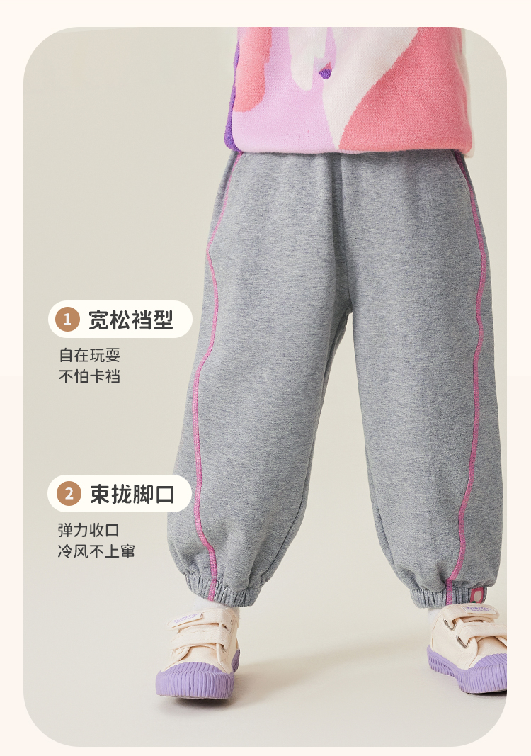 【90-140】【MQDmini】男女童春秋卫裤纯色线迹裤子