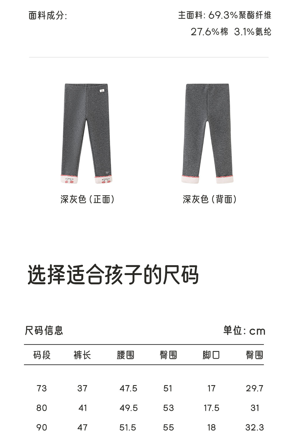 英氏女童打底裤秋冬绒感女宝儿童保暖外出休闲长裤子YRKDJ4R072A